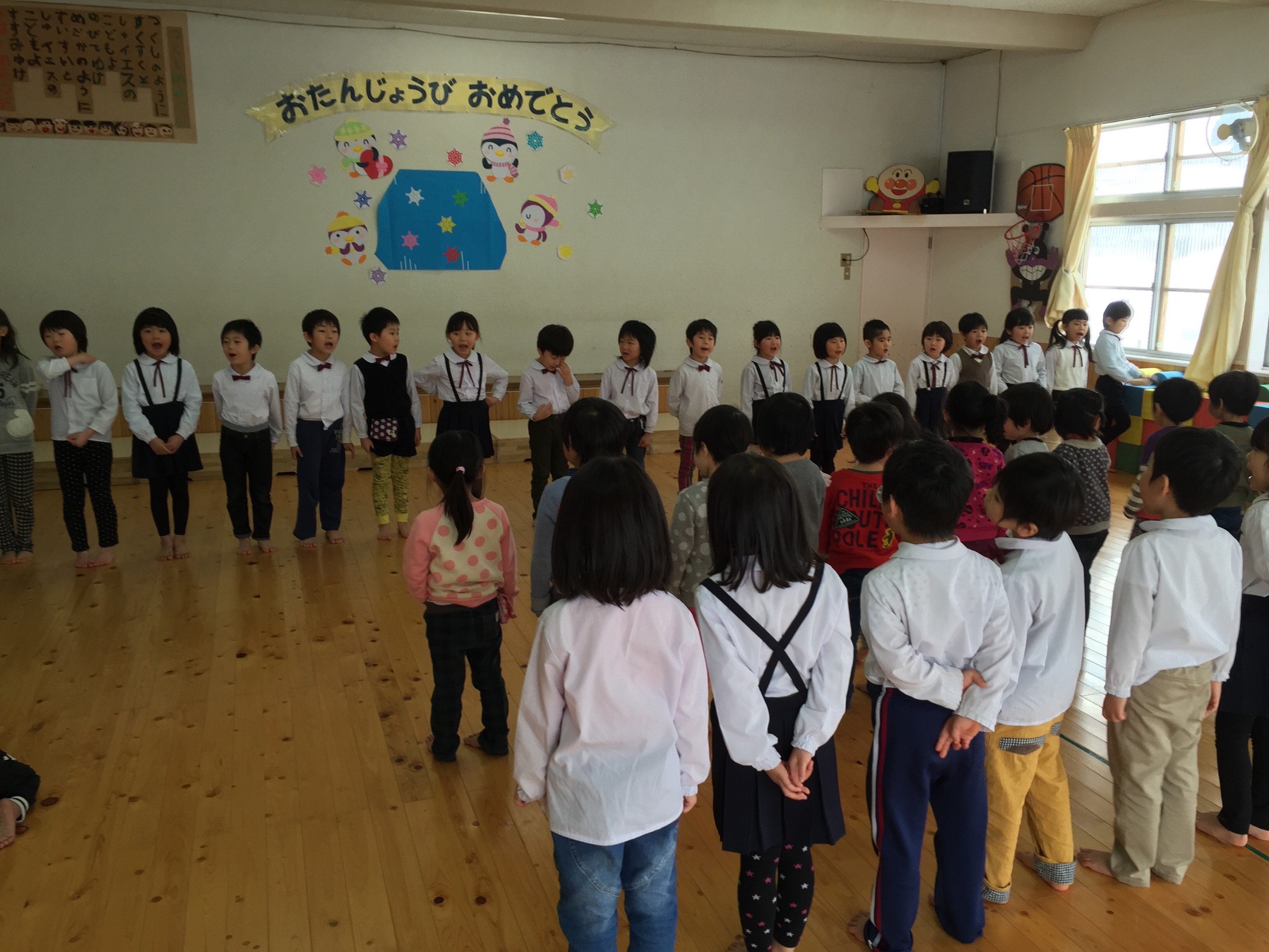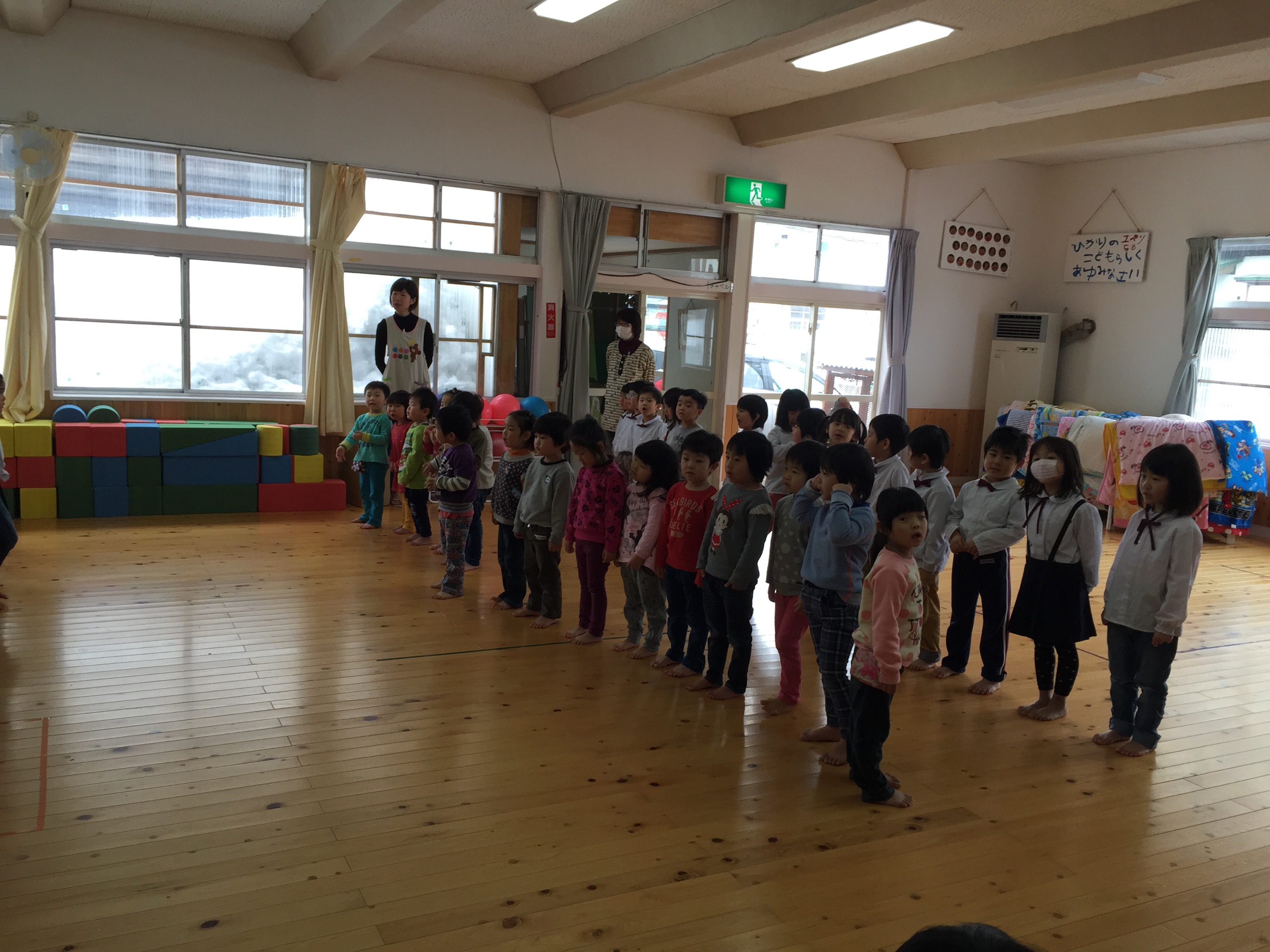 今日は、卒園するゆり組さんへ、ありがとうの気持ちを込めて、みんなでホールで楽しい時間を過ごすことができました。