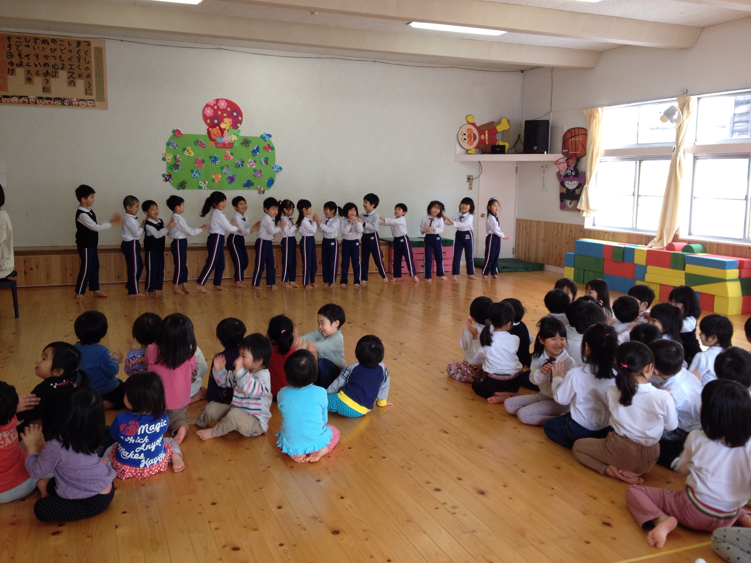 今日は、ホールで年長さんへ感謝の気持ちを込めた「ありがとう会」が開かれました♫