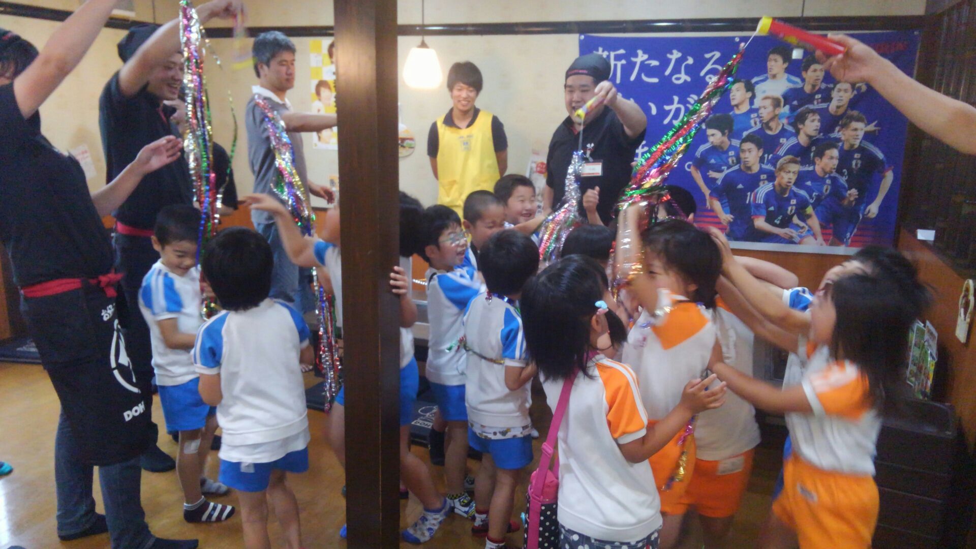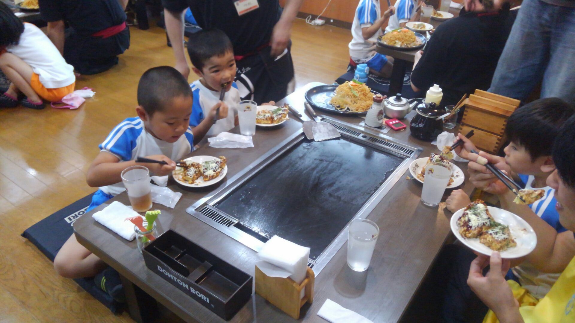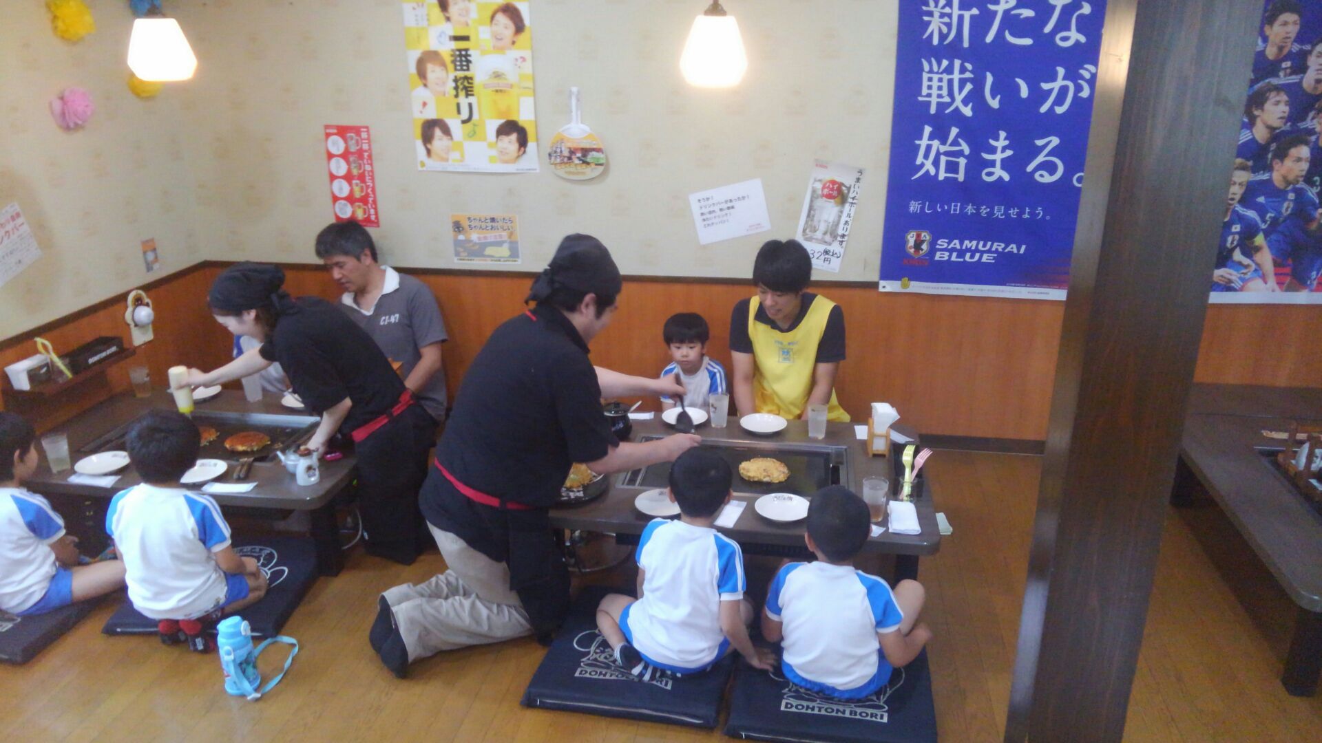 今日は年長さんが十文字にある「道とん堀」というお店からご招待を受けて、おいしいお好み焼きと焼きそばをごちそうになってきました🎵 バルーンアートのお土産もいただいたり、来週末に行われるキャンプに向けてのエールもいただいたりと、子どもたちも先生たちも、大喜び!楽しいおいしい時間を過ごしてきました♪
