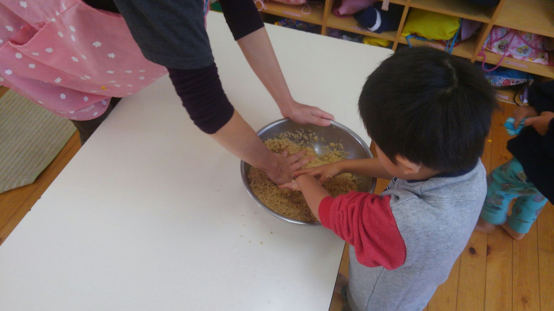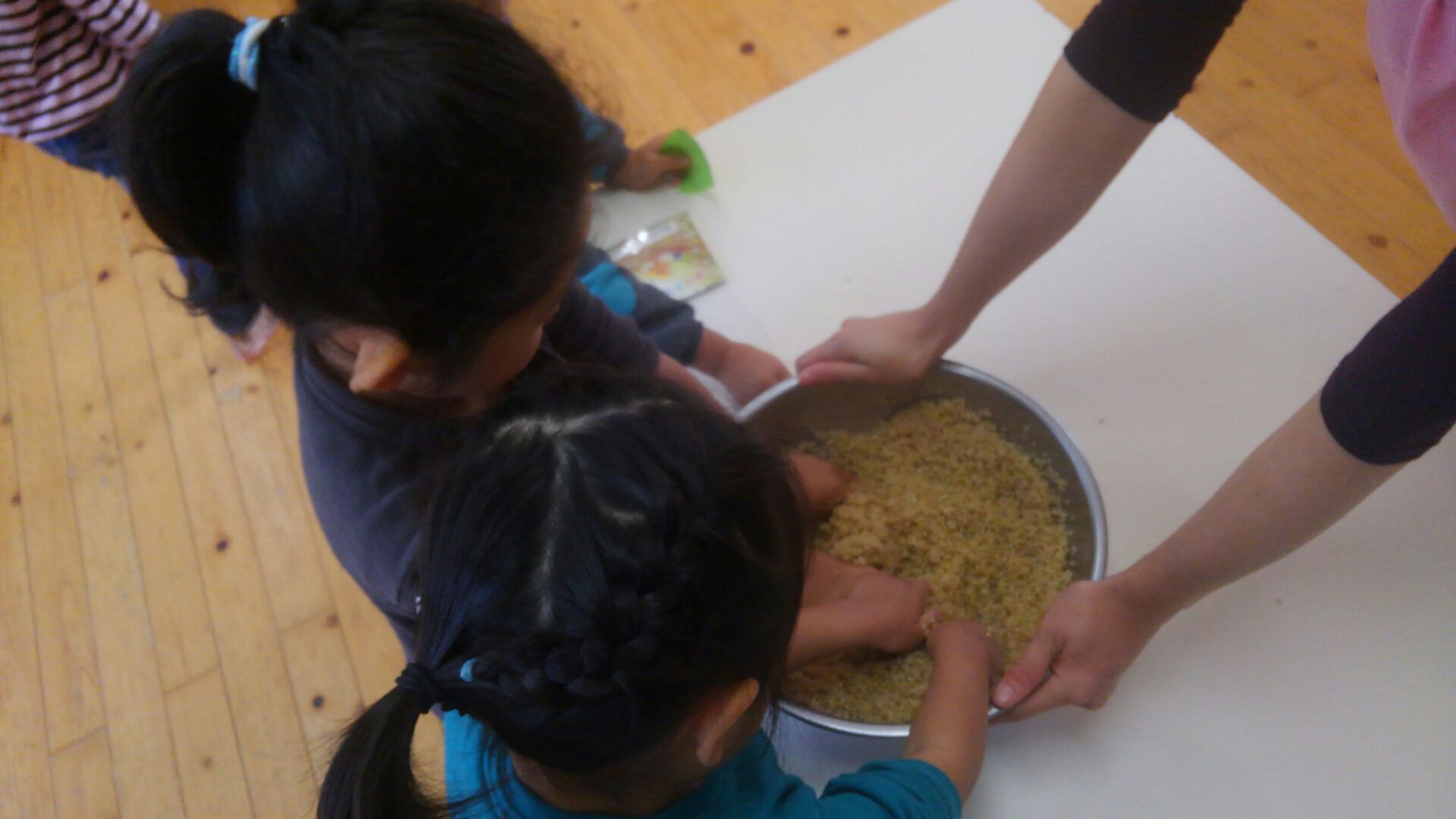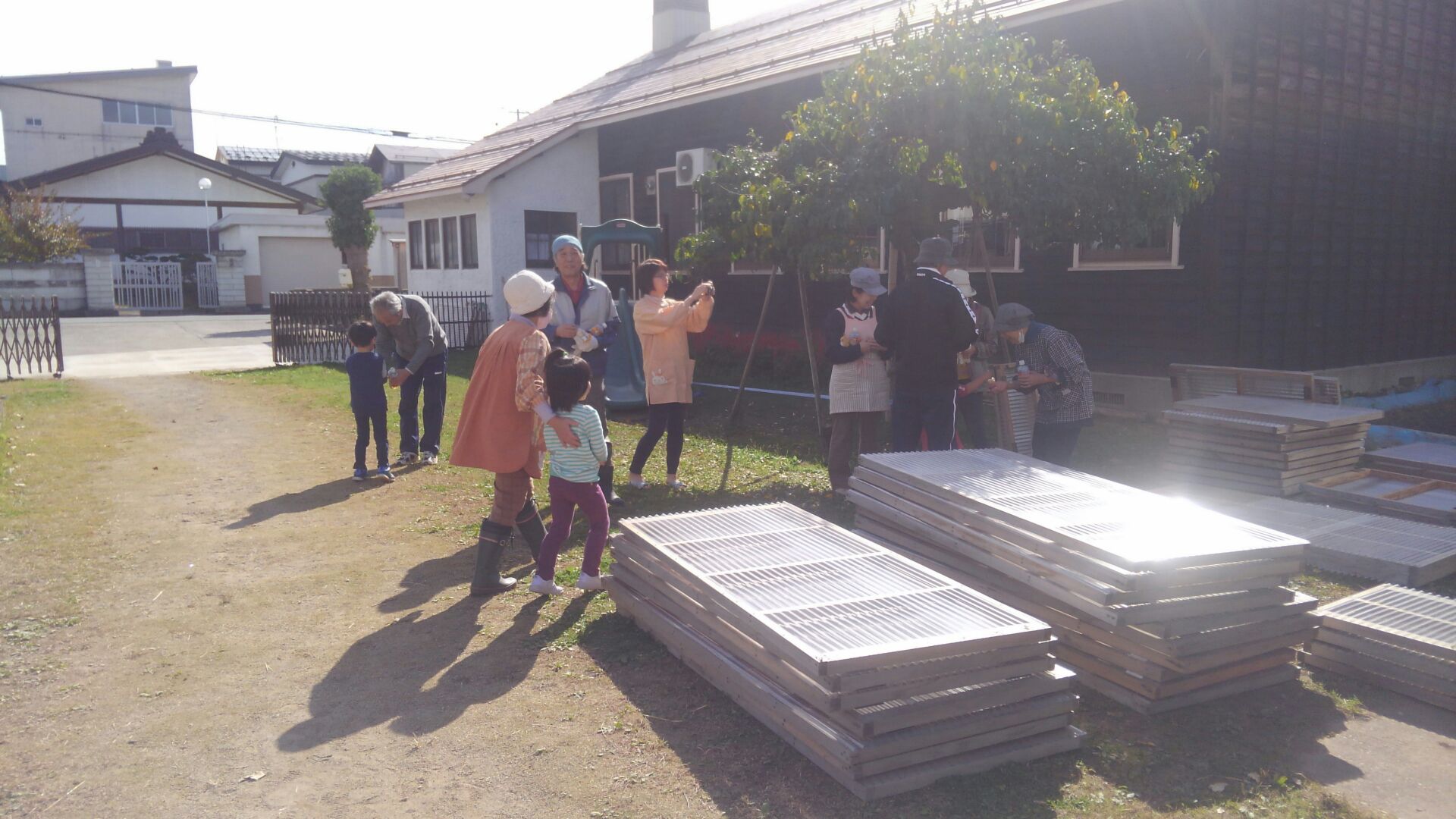 今日の冬支度の作業を手伝ってくださったおじいちゃん・おばあちゃんたちと年長さんに、年中さんが「手作りおにぎり」の差し入れをしてくれました♪ 作業を一段落して、お茶っこタイム⭐年中さんから、握りたてほやほやの温かいおにぎりをいただきました♪ お米を研ぐところから心を込めて作ってくれたおにぎりは、とても美味しく、力がもりもりわいてきました!後半の作業も、最後までがんばることができました♪