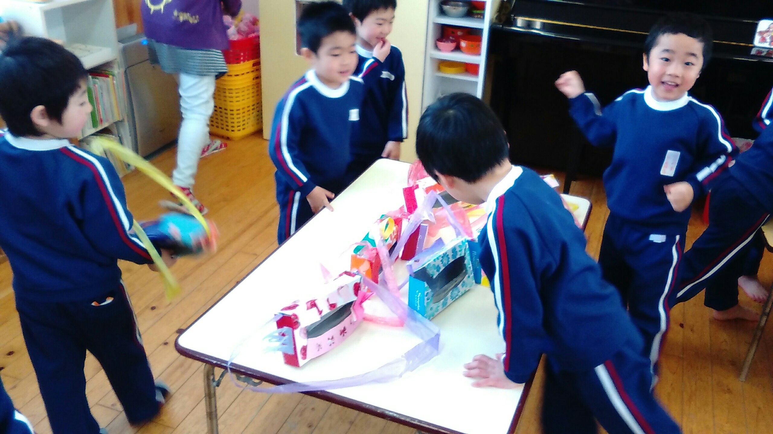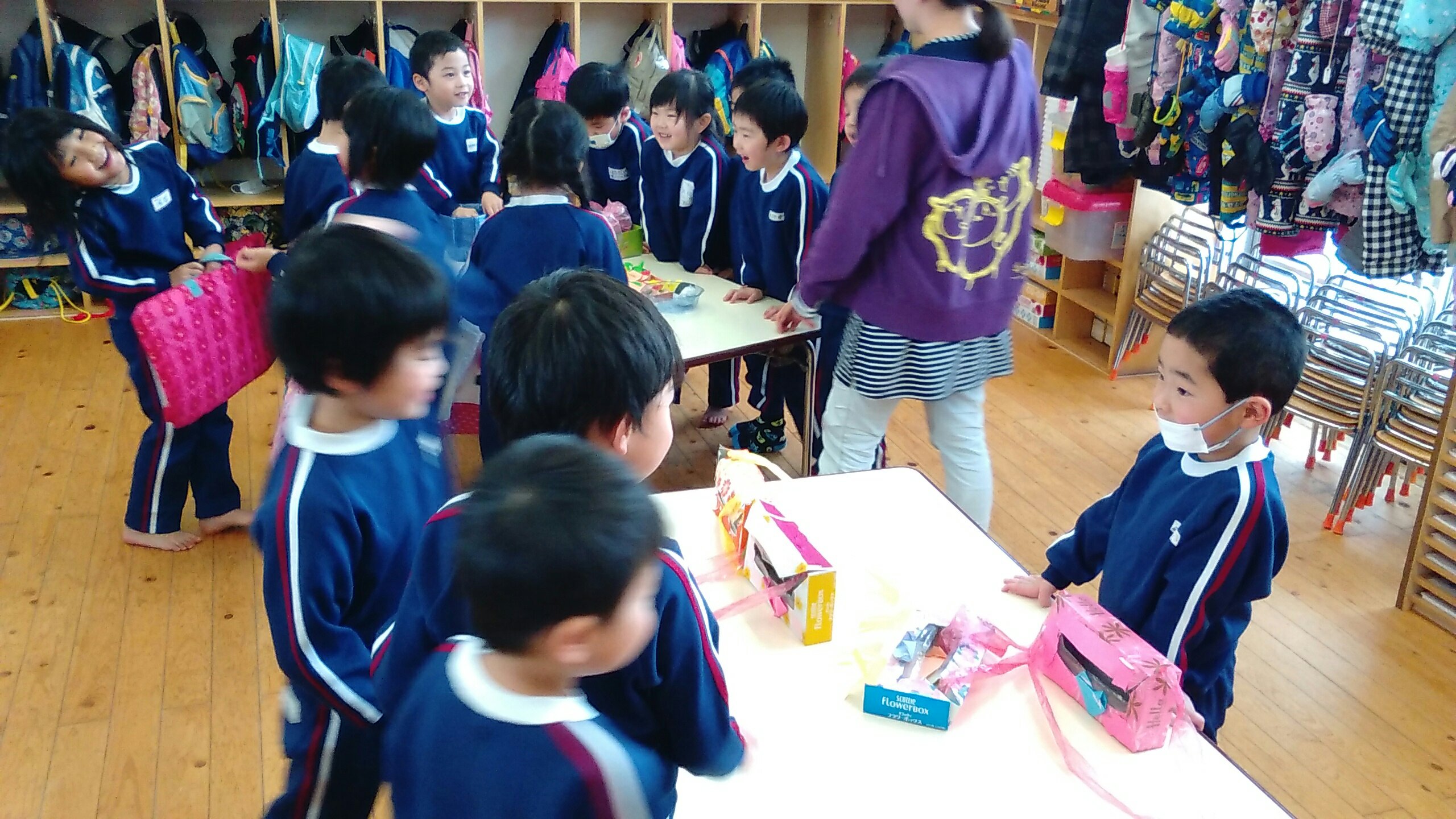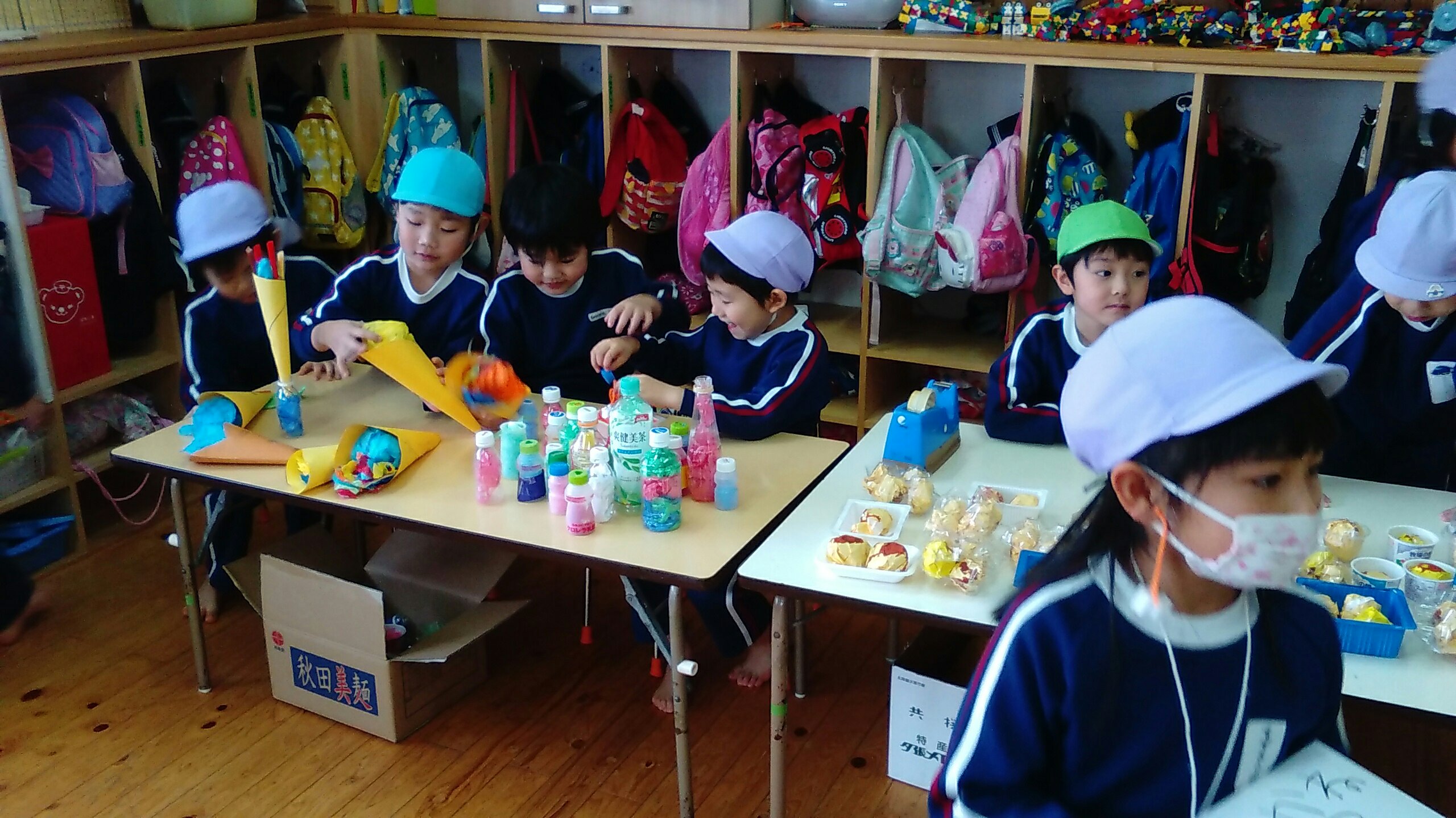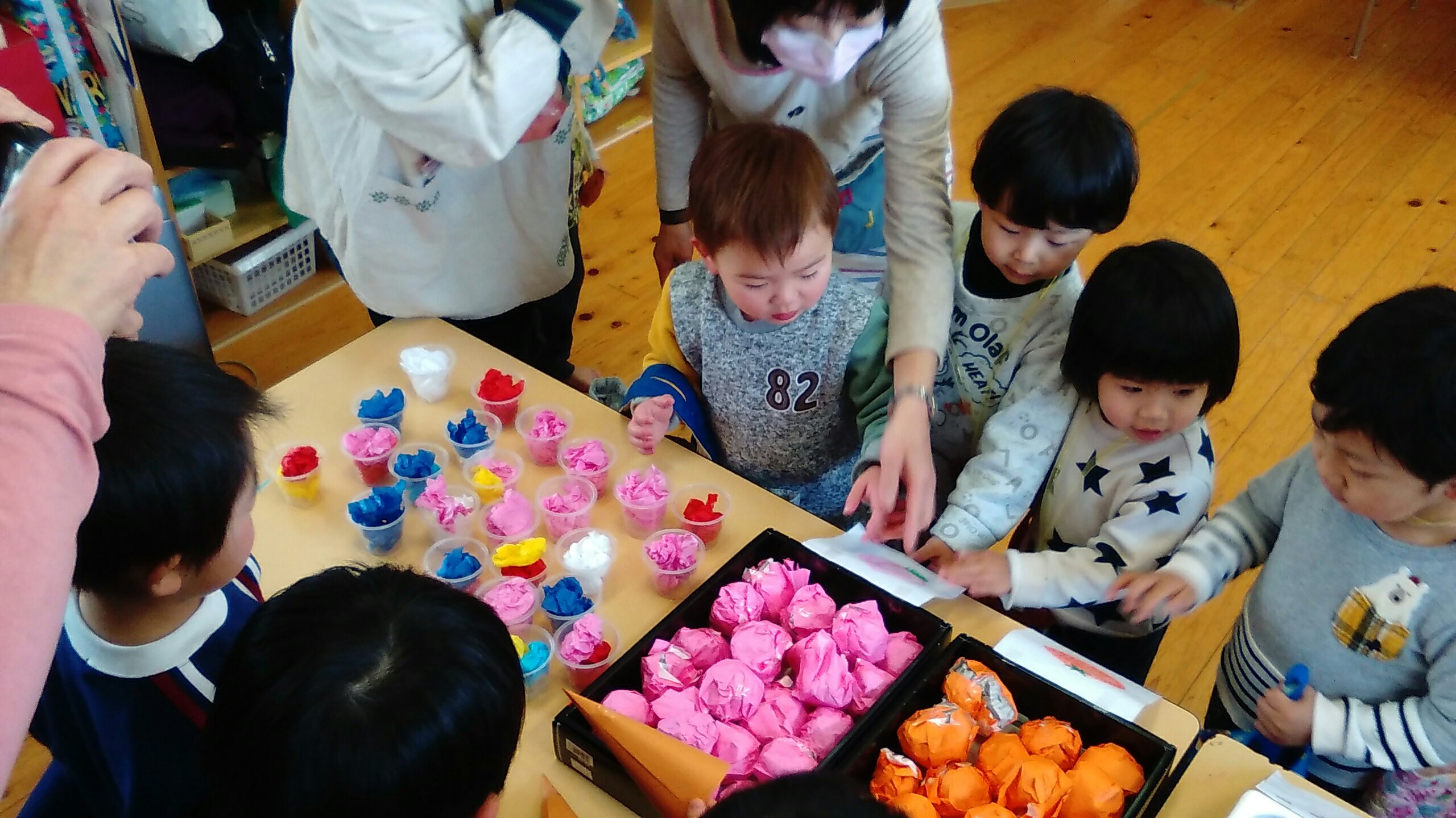 おみせやさんになったゆり組もすみれ組もたんぽぽ組も、元気よく