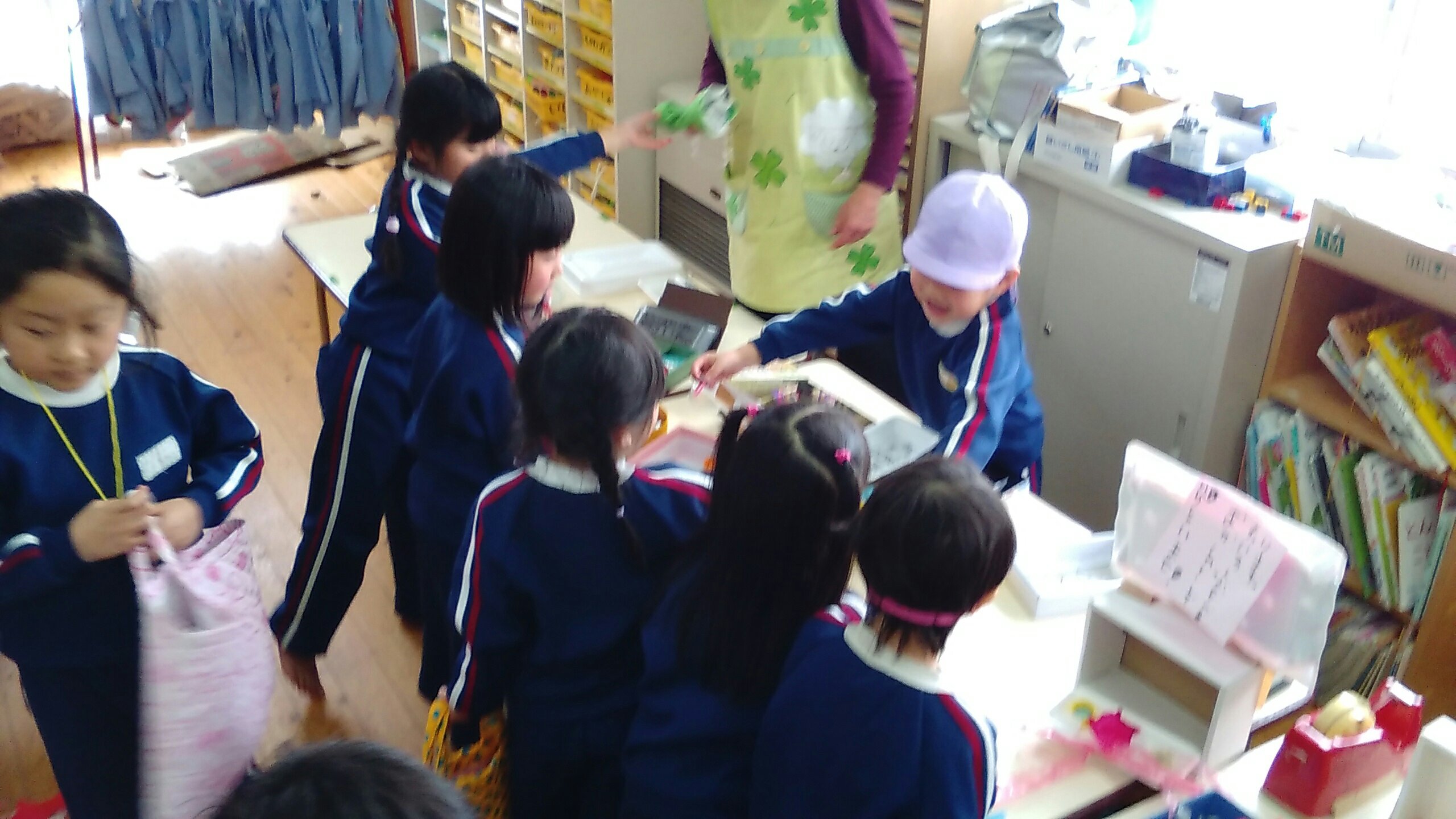 4月からたんぽぽ組さんになるもも組さんも、この日をとても楽しみにしてくれていたようで、ちょっとドキドキしながらも、たくさんのお買い物をしてくれました♪