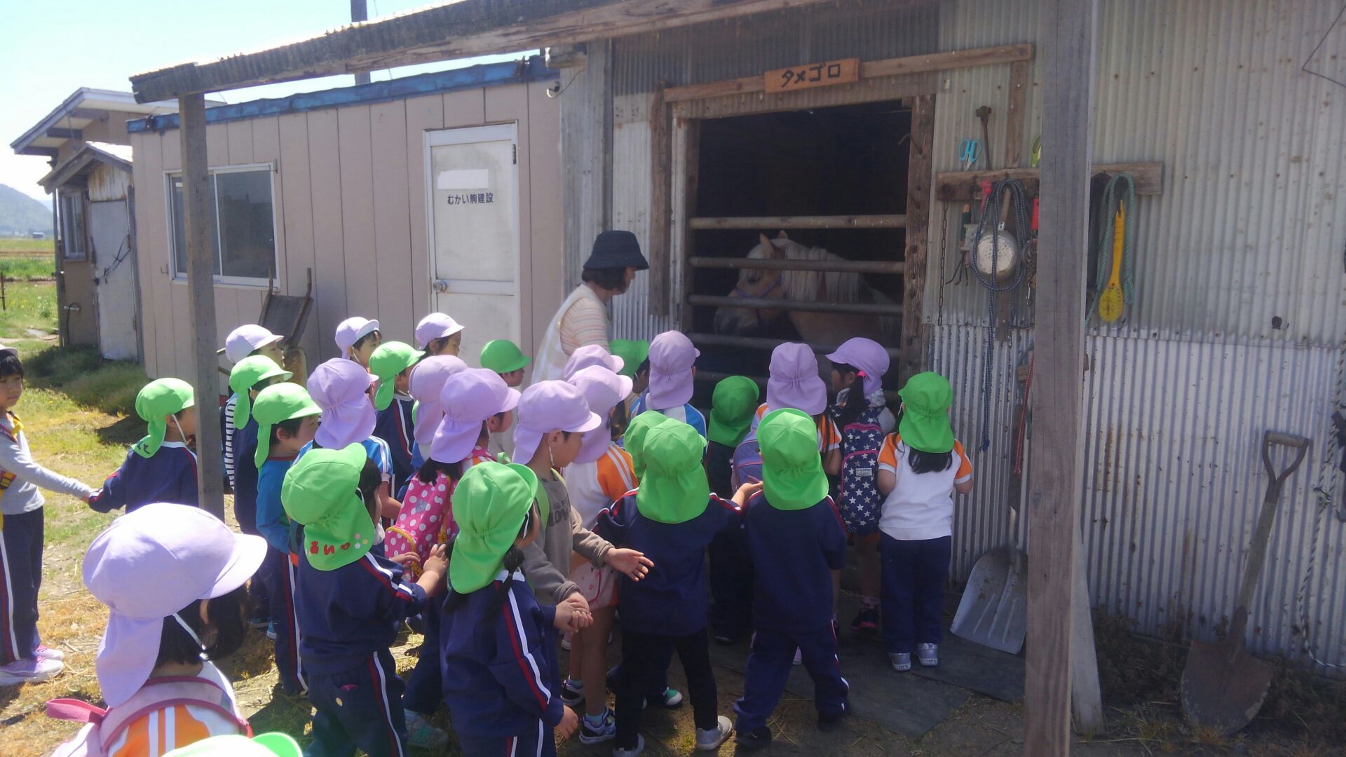 先週の金曜日(5月19日)年長さんが年少さんの手を優しく握り、さつまいも畑まで、お散歩に連れていってくれました。