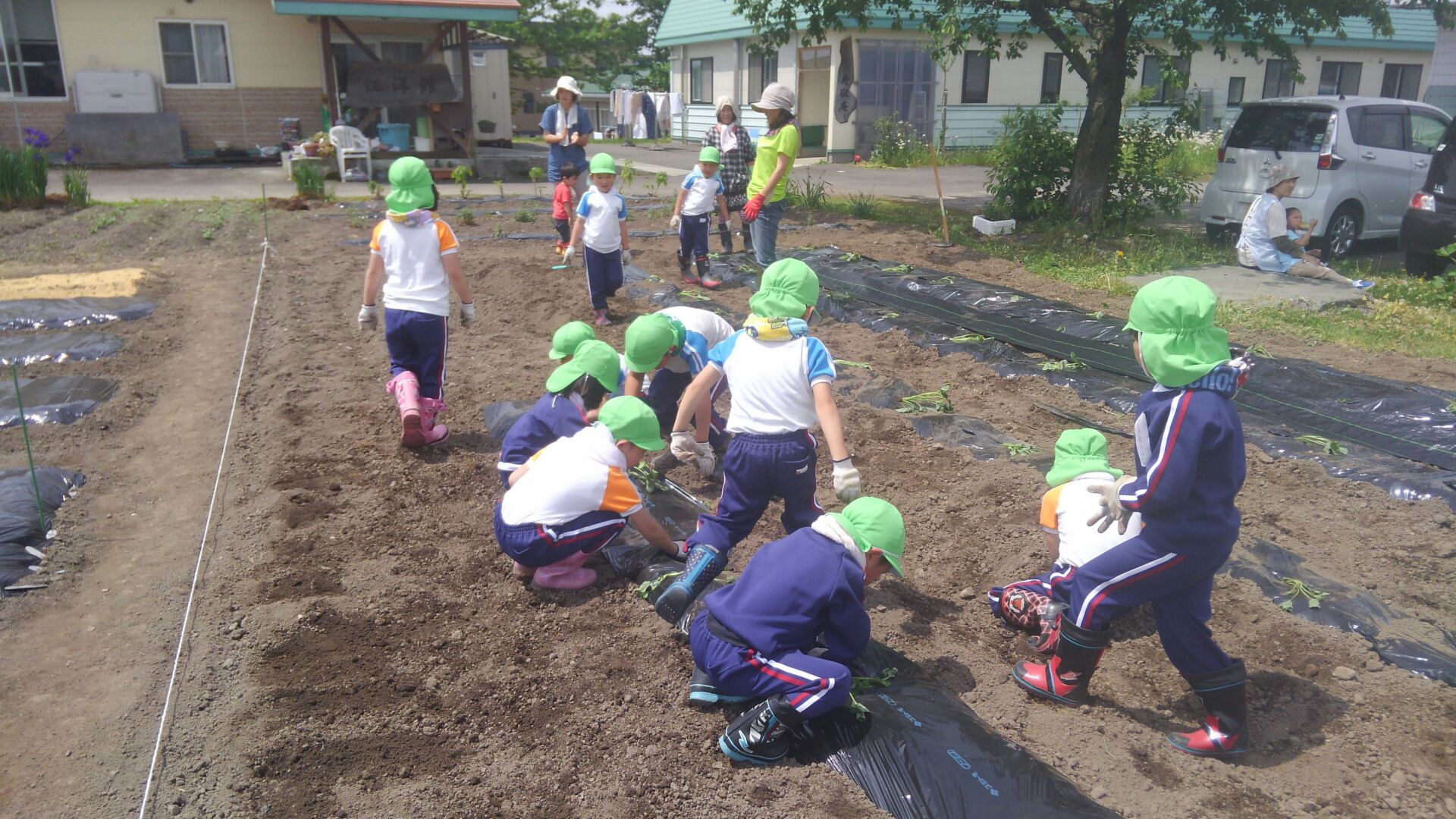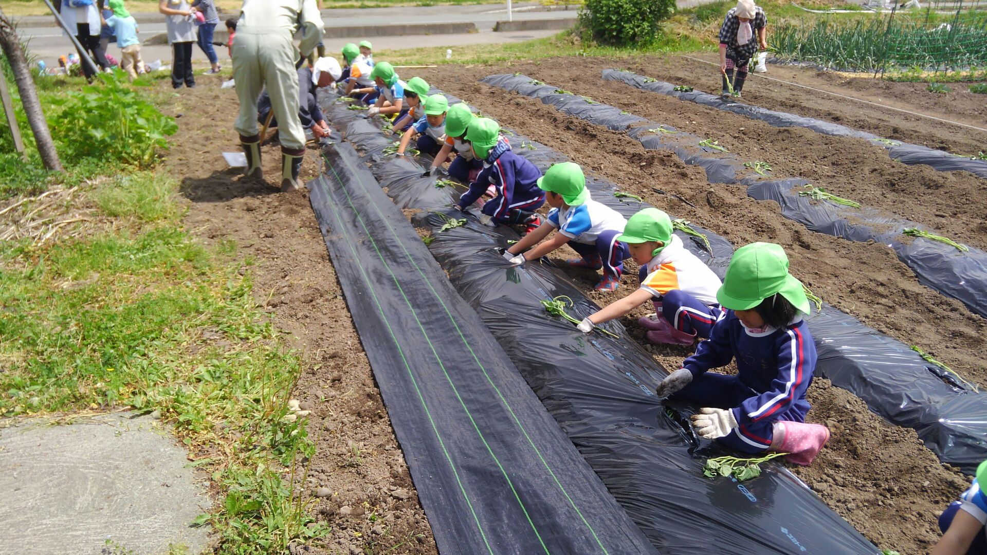 昨日、年長さんがさつまいもの苗植えをがんばりました! 保育者からの説明を聞いた子どもたちは、スムーズに作業を進めていき、その後は自分たちで考えて、苗を植えていき、水やりも楽しみながら、取り組むことができました。 これから、秋の収穫まで、水やりや草取りなどのお世話をしていまきます。