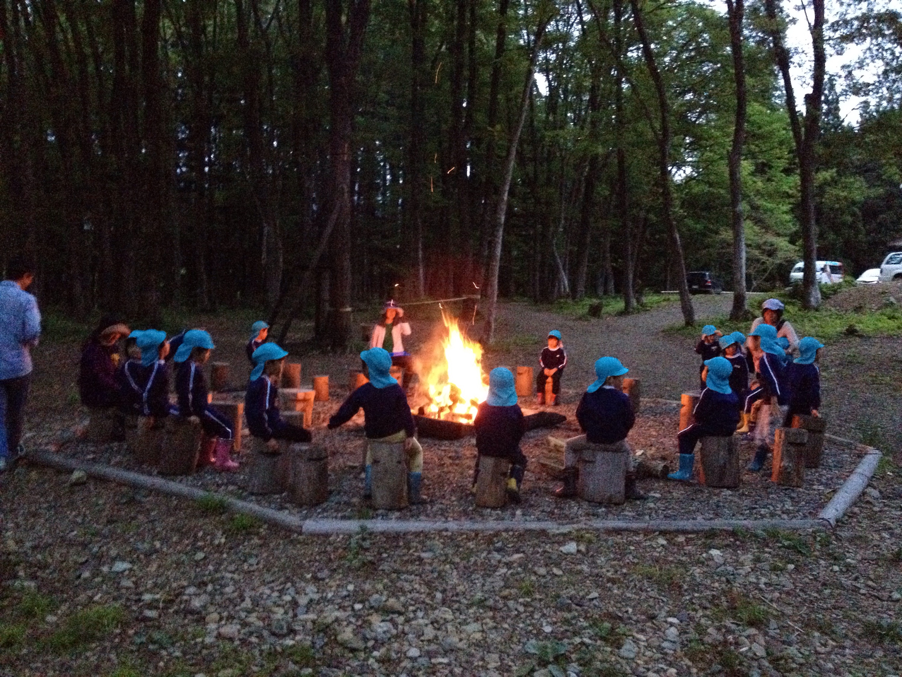 天気も守られて、1日目の予定していた活動を無事に終えることができました。1日の締めは、キャンプファイヤー。