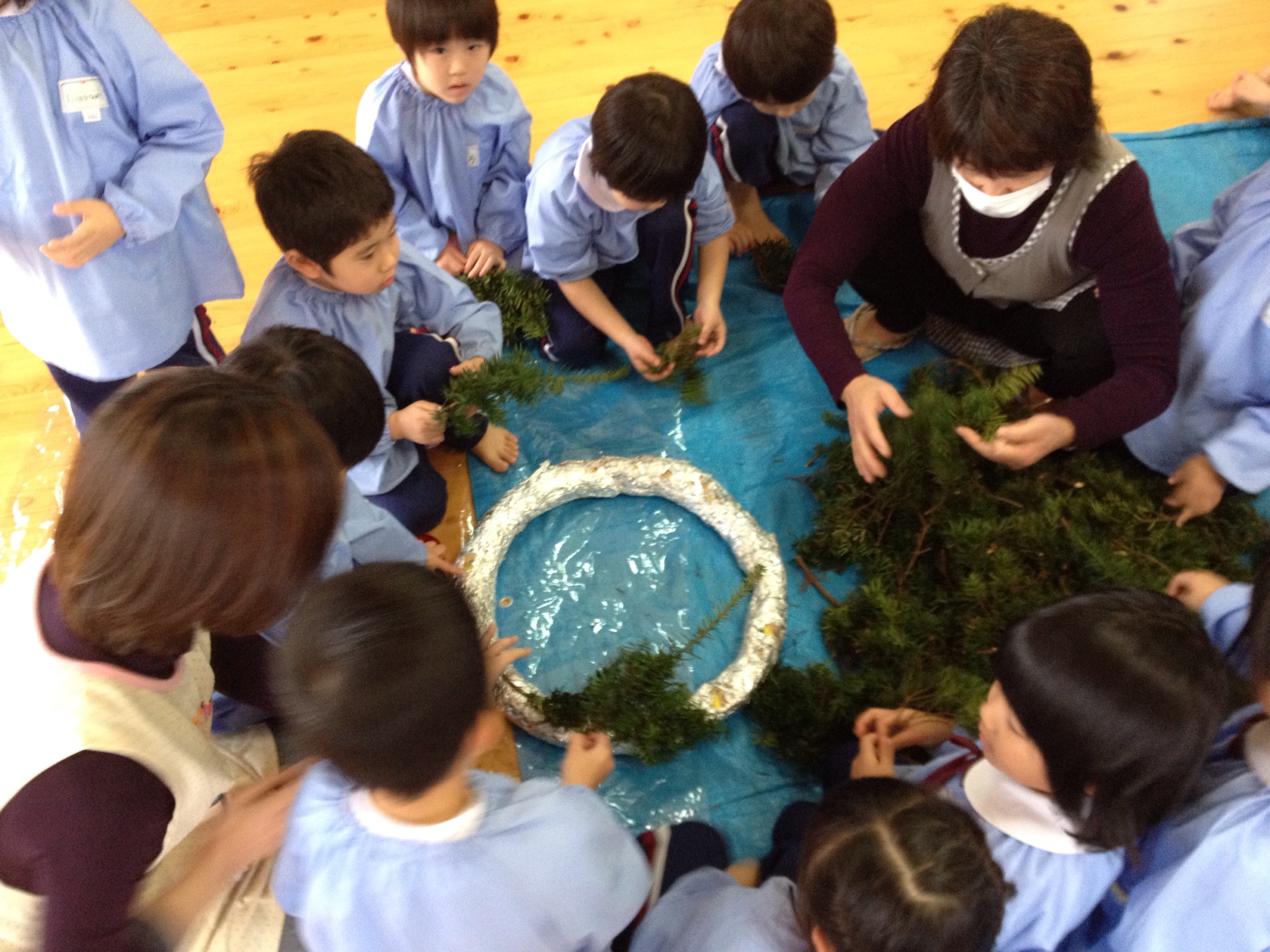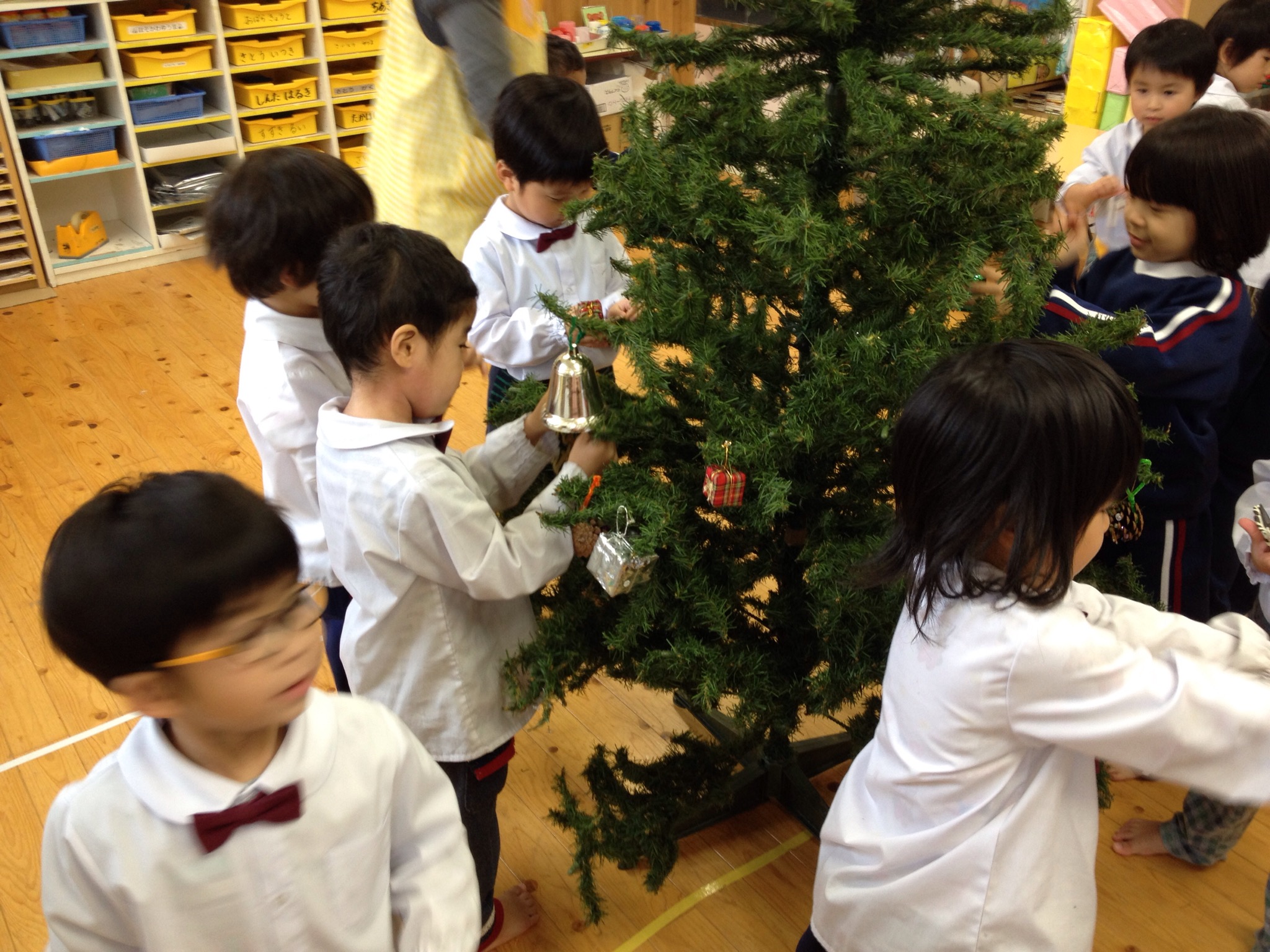 今日は来月のクリスマスに向けて、準備を行いました♫ ゆり組とすみれ組は、クリスマスリースの飾り付け。 たんぽぽ組は、クリスマスツリーを飾り付けしました♫