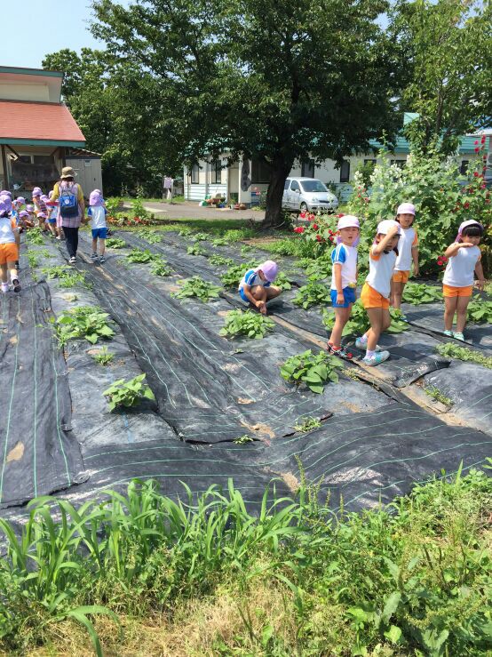 年長さんが、さつまいも畑に行って、さつまいもの生長を確認してきました。この間確認したときよりも、さつまいもの葉っぱが大きくなっていました!