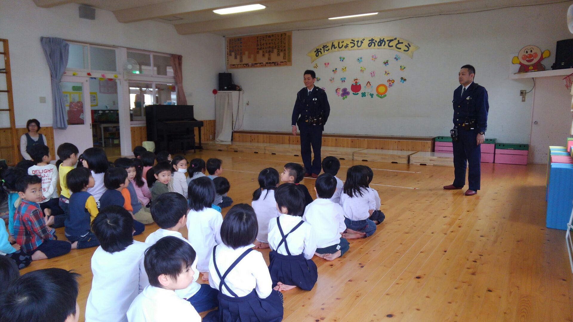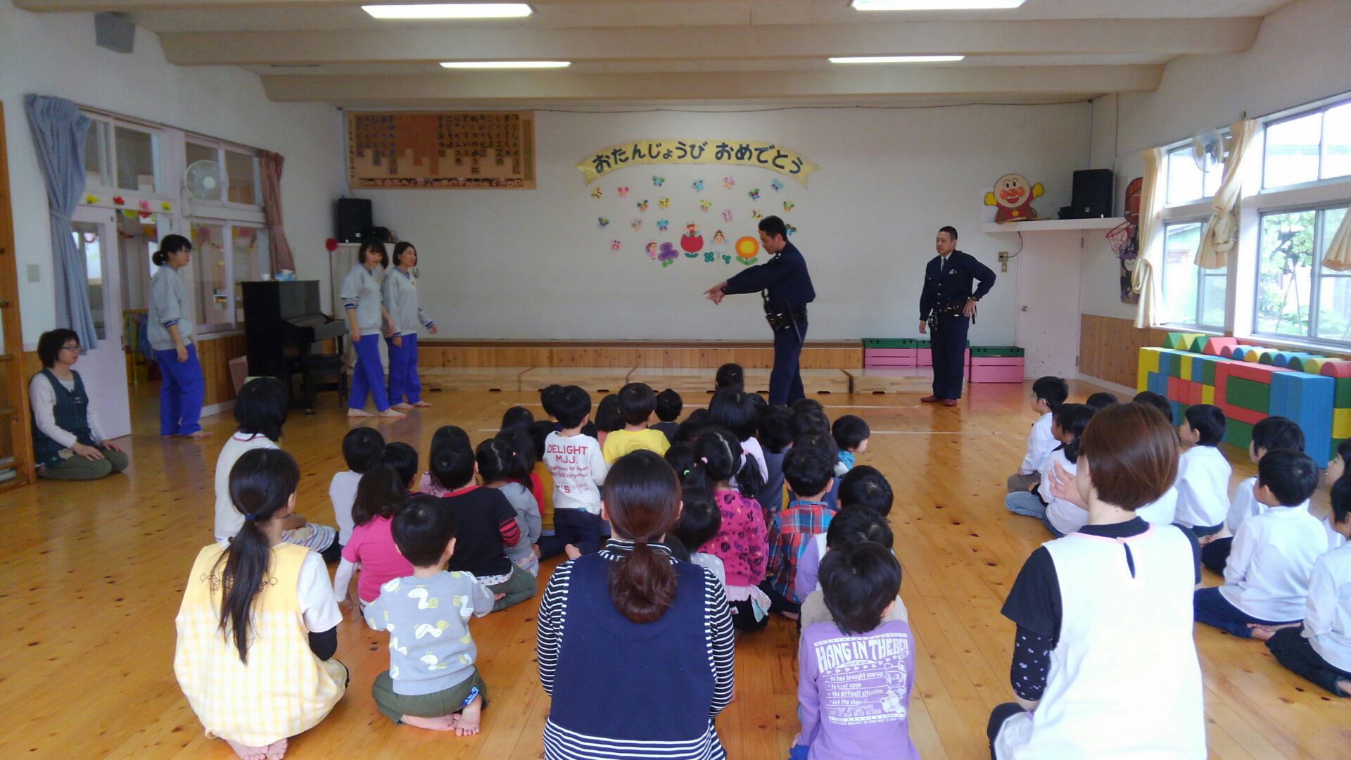 今日は、警察官の方が来てくださり、交通安全指導を行ってくださいました。