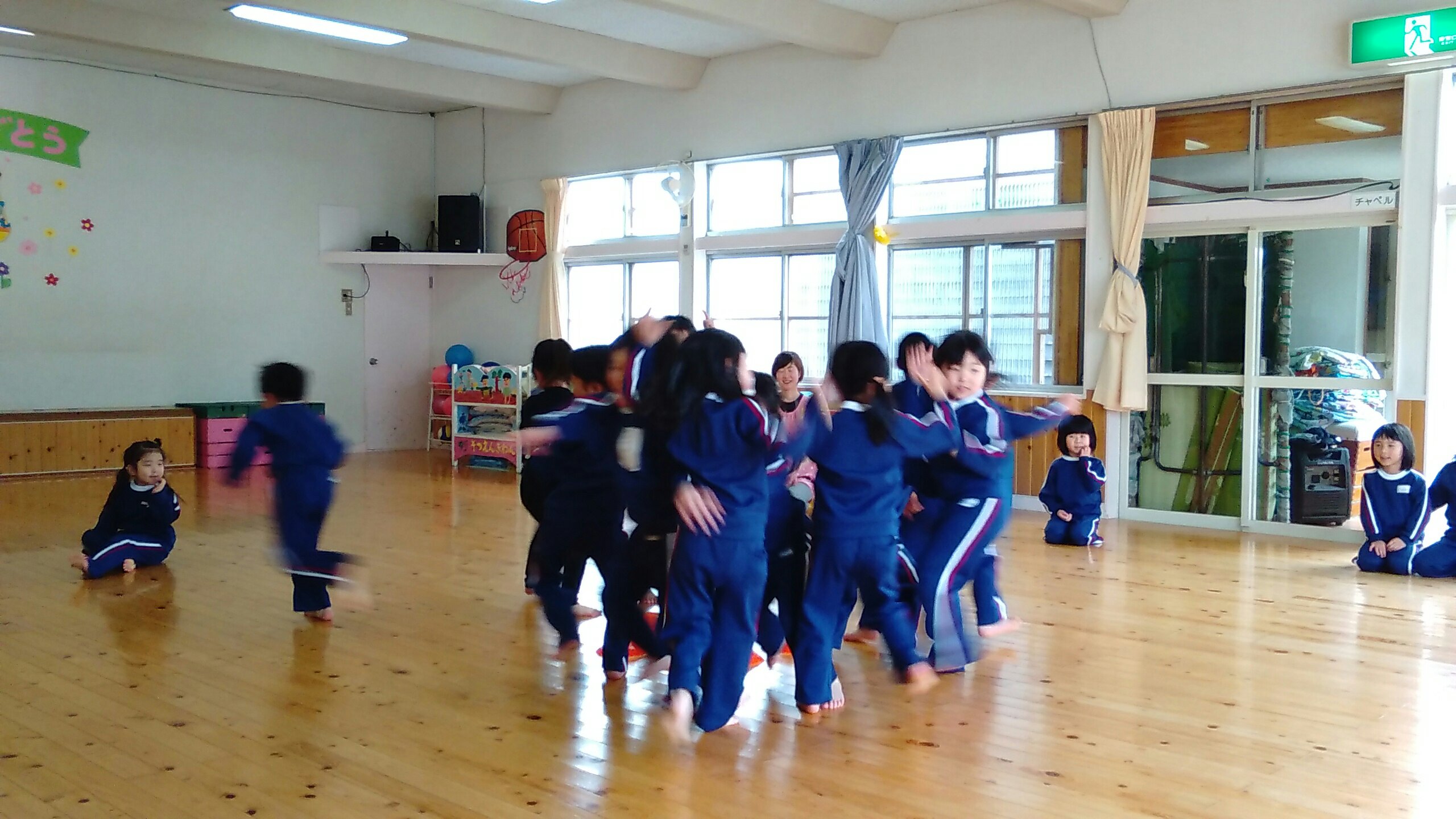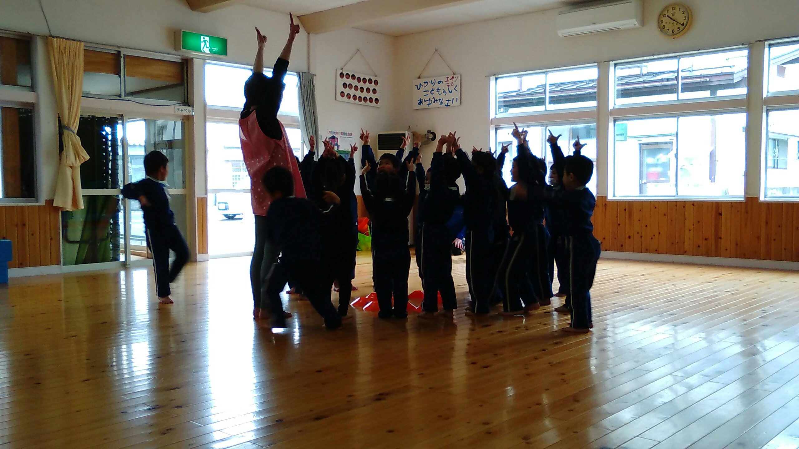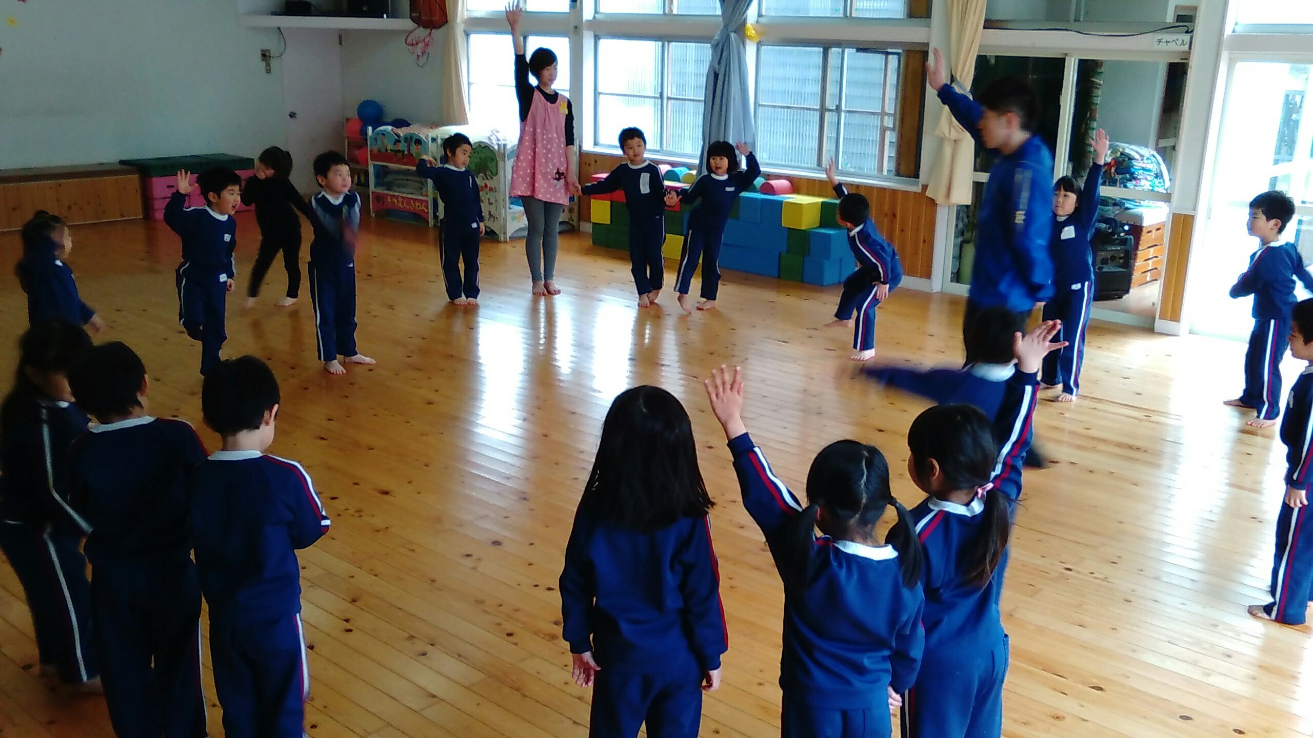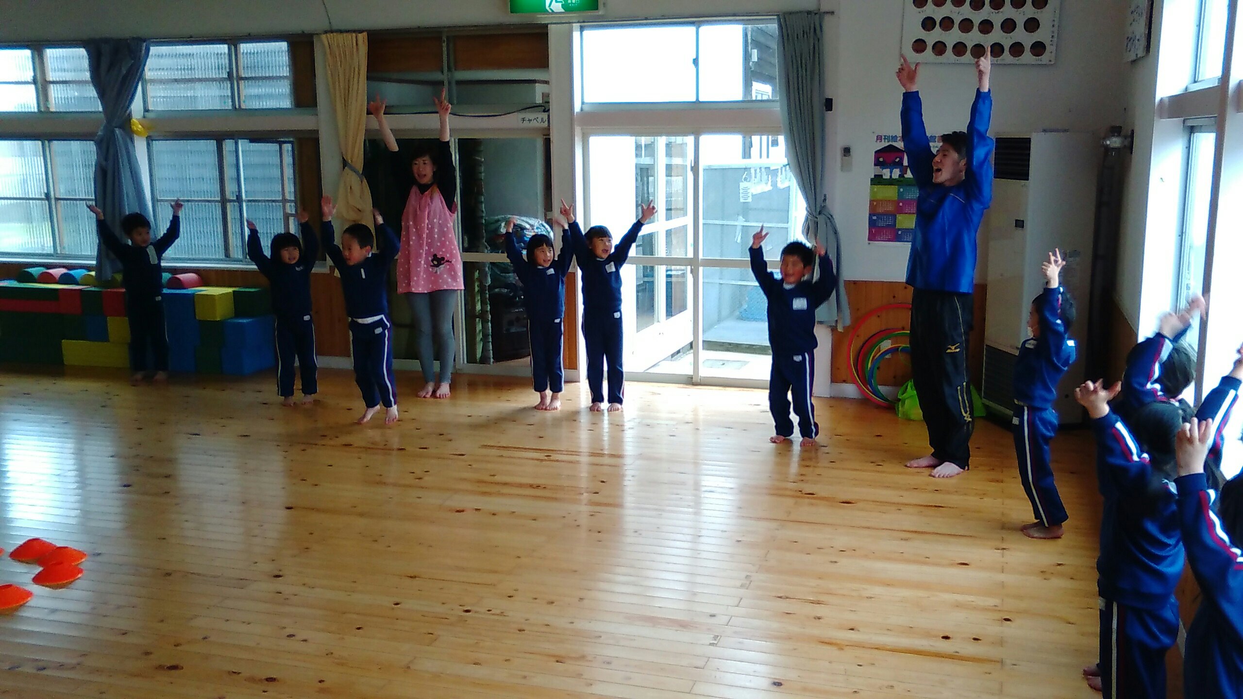 運動の先生のお話を聞きながら、楽しく体を動かしていました♪