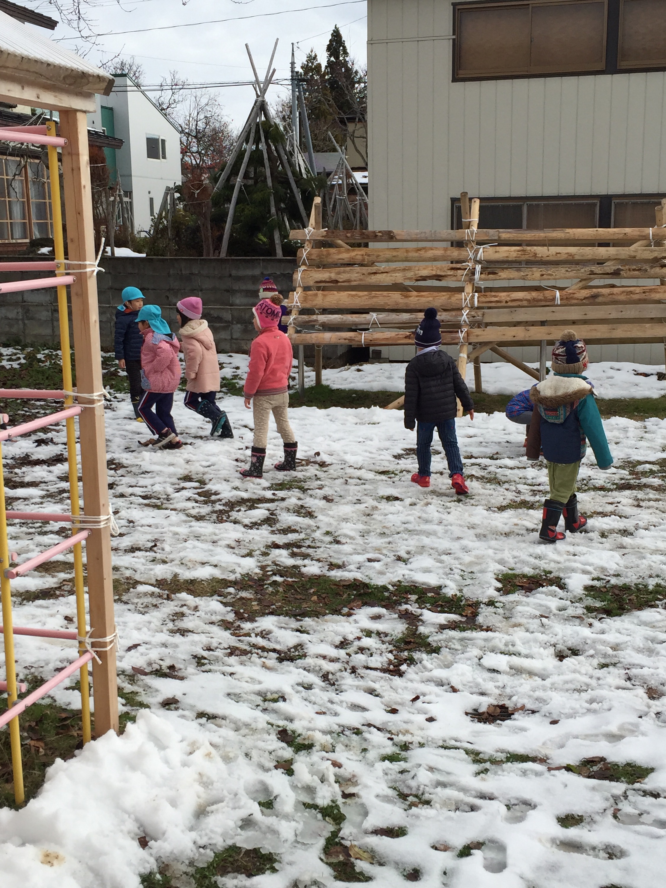 クリスマス一色の園内では今日も、教会にいって降誕劇に取り組む年長さんと年中さんでした。