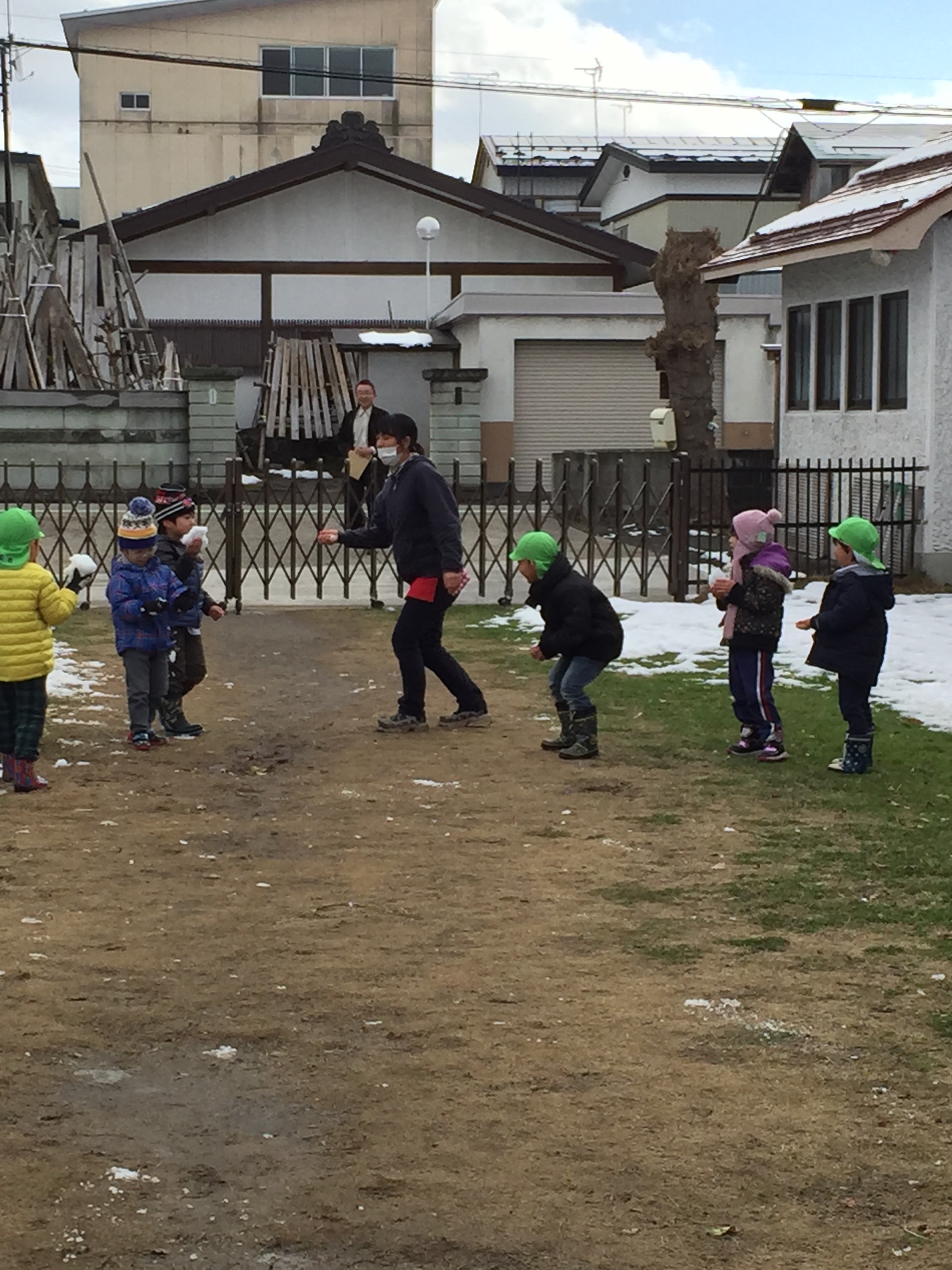 練習が終わった後はふたクラスとも園庭に出て、元気に遊んでいました。