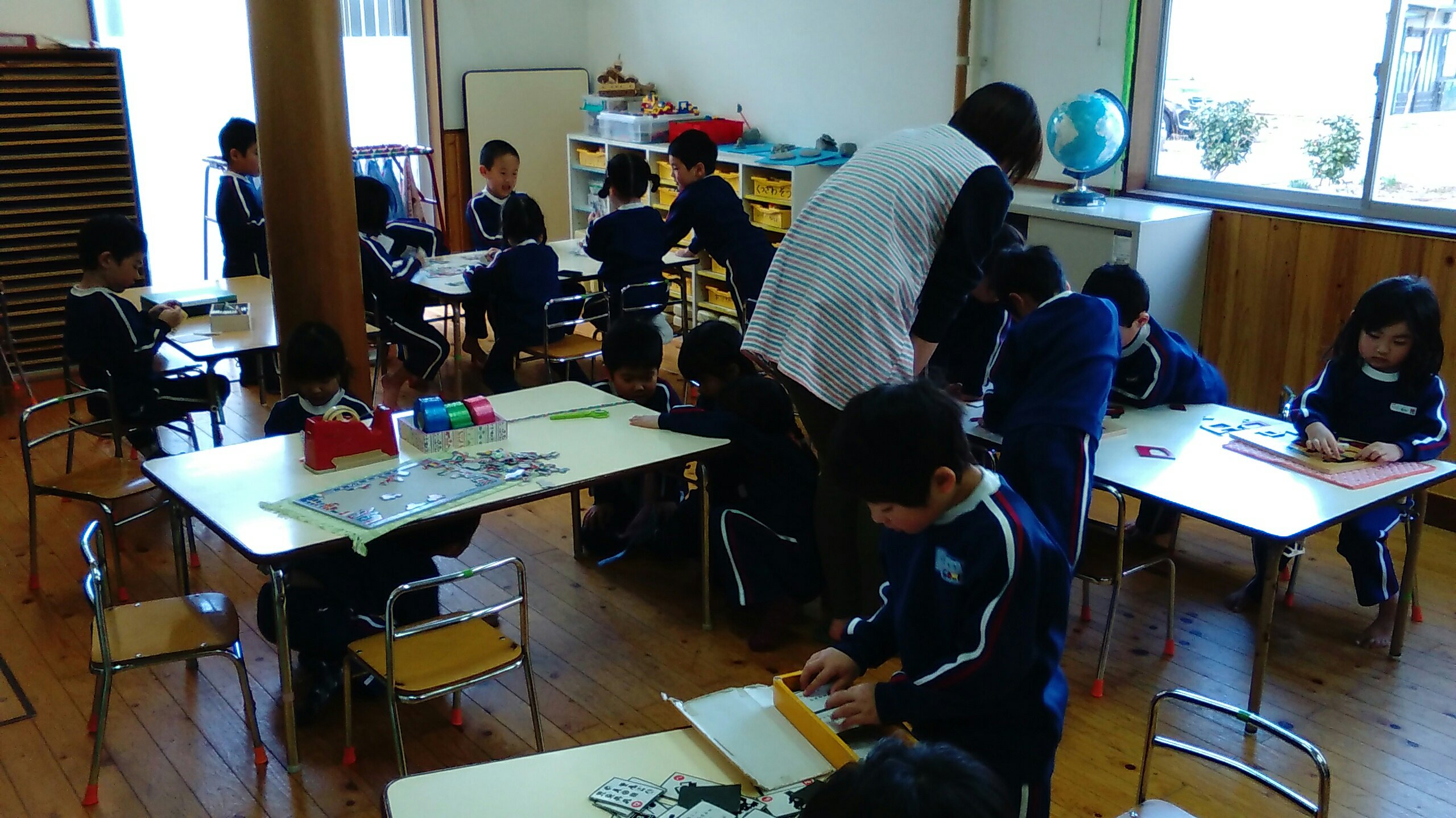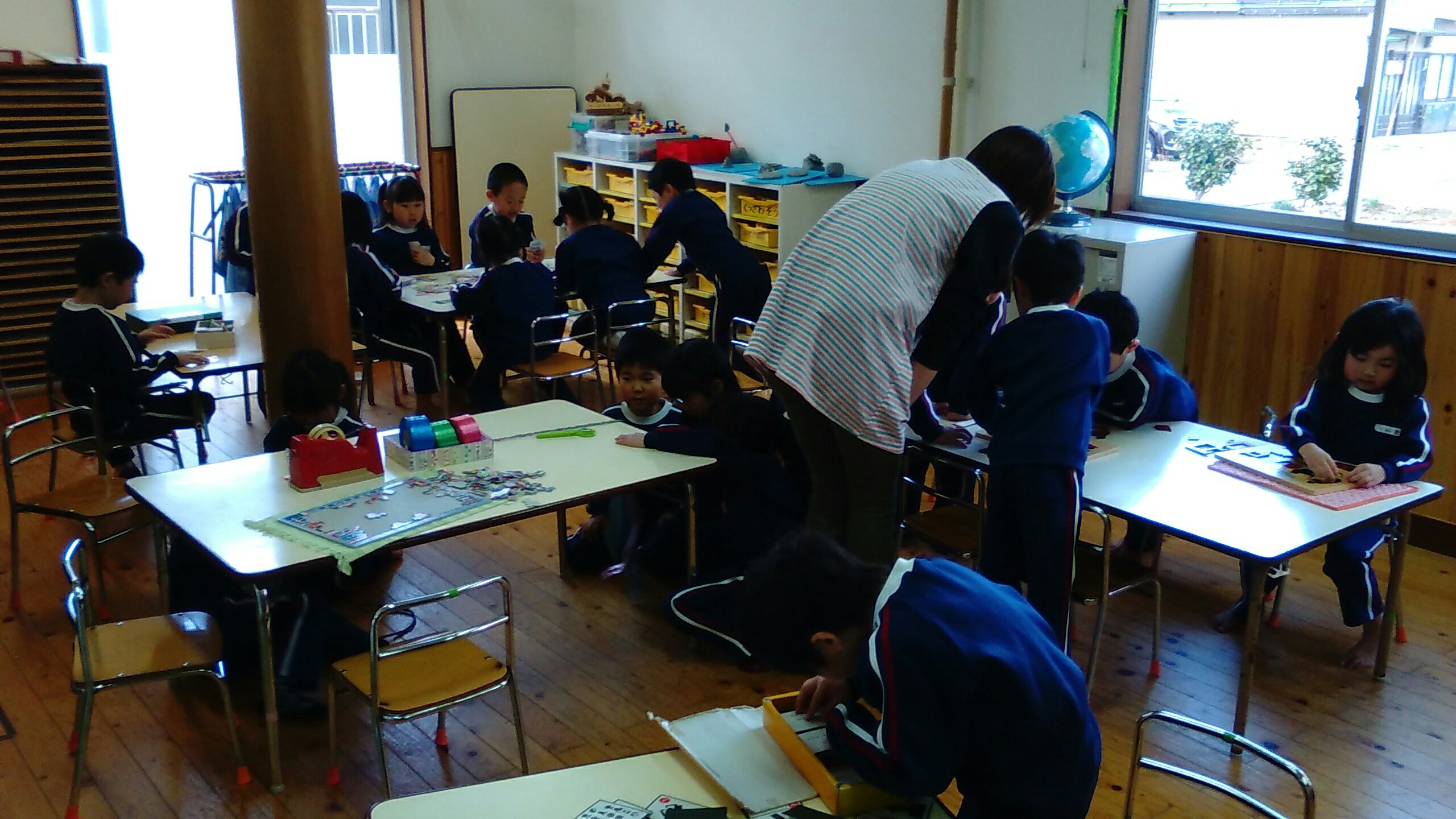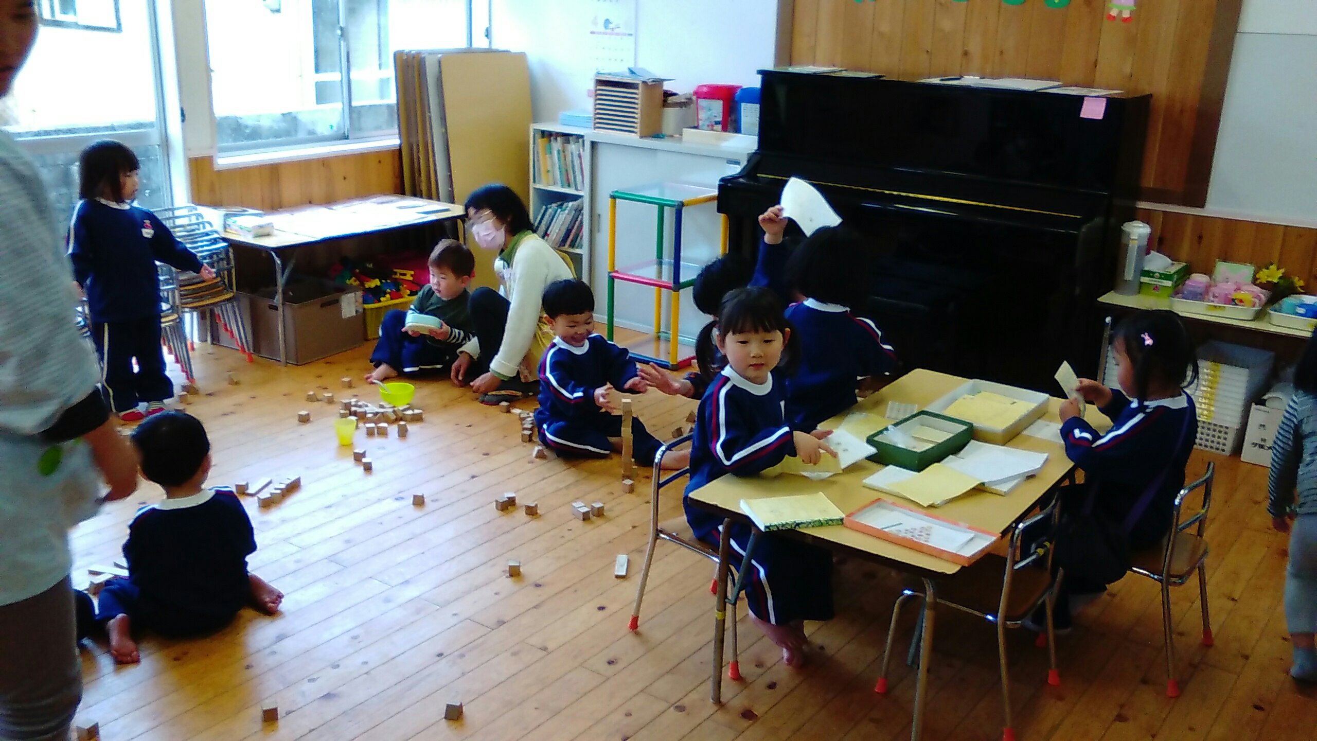 ホールで遊んだり、園の周りをお散歩したりと楽しく過ごしています。