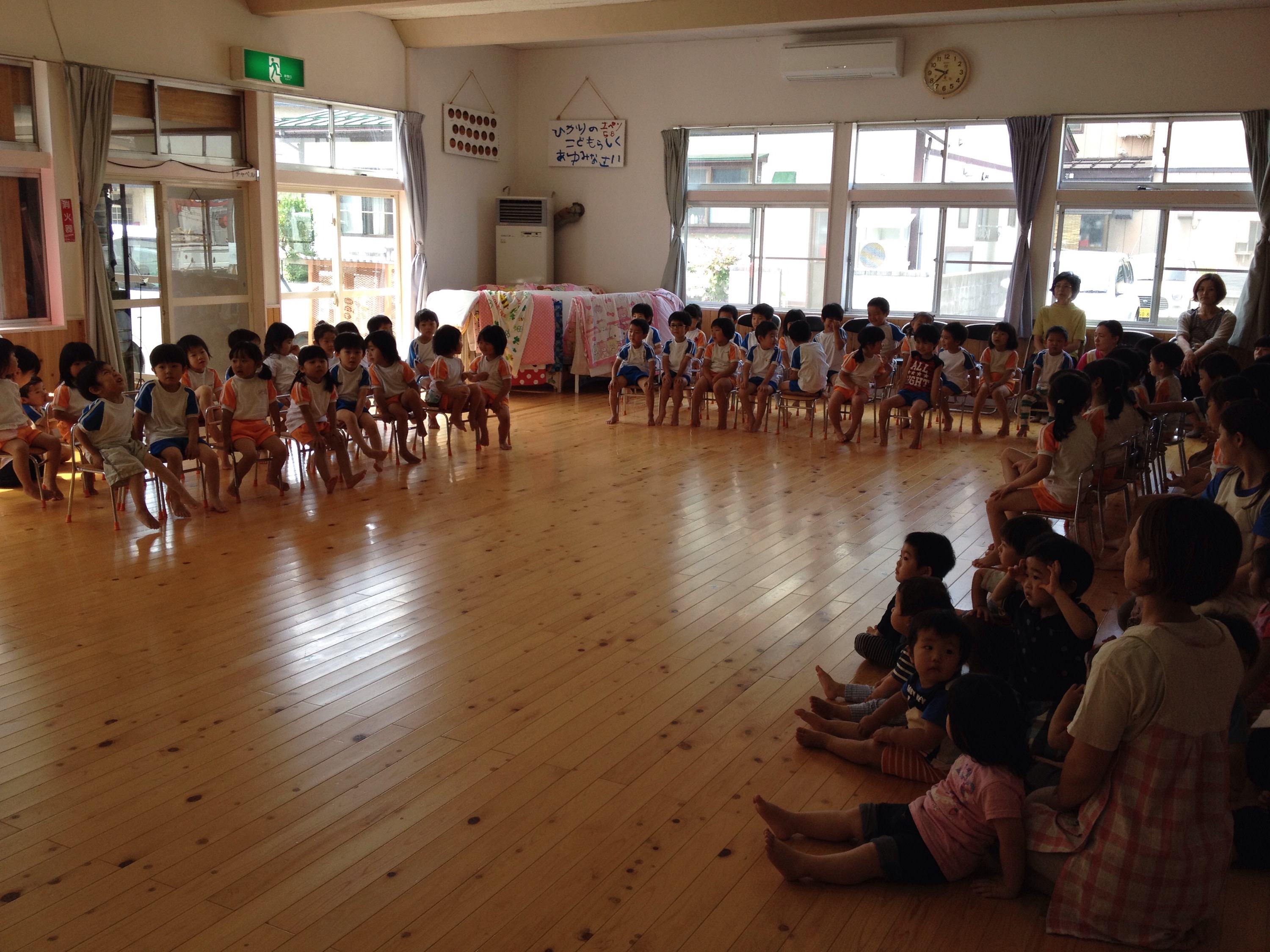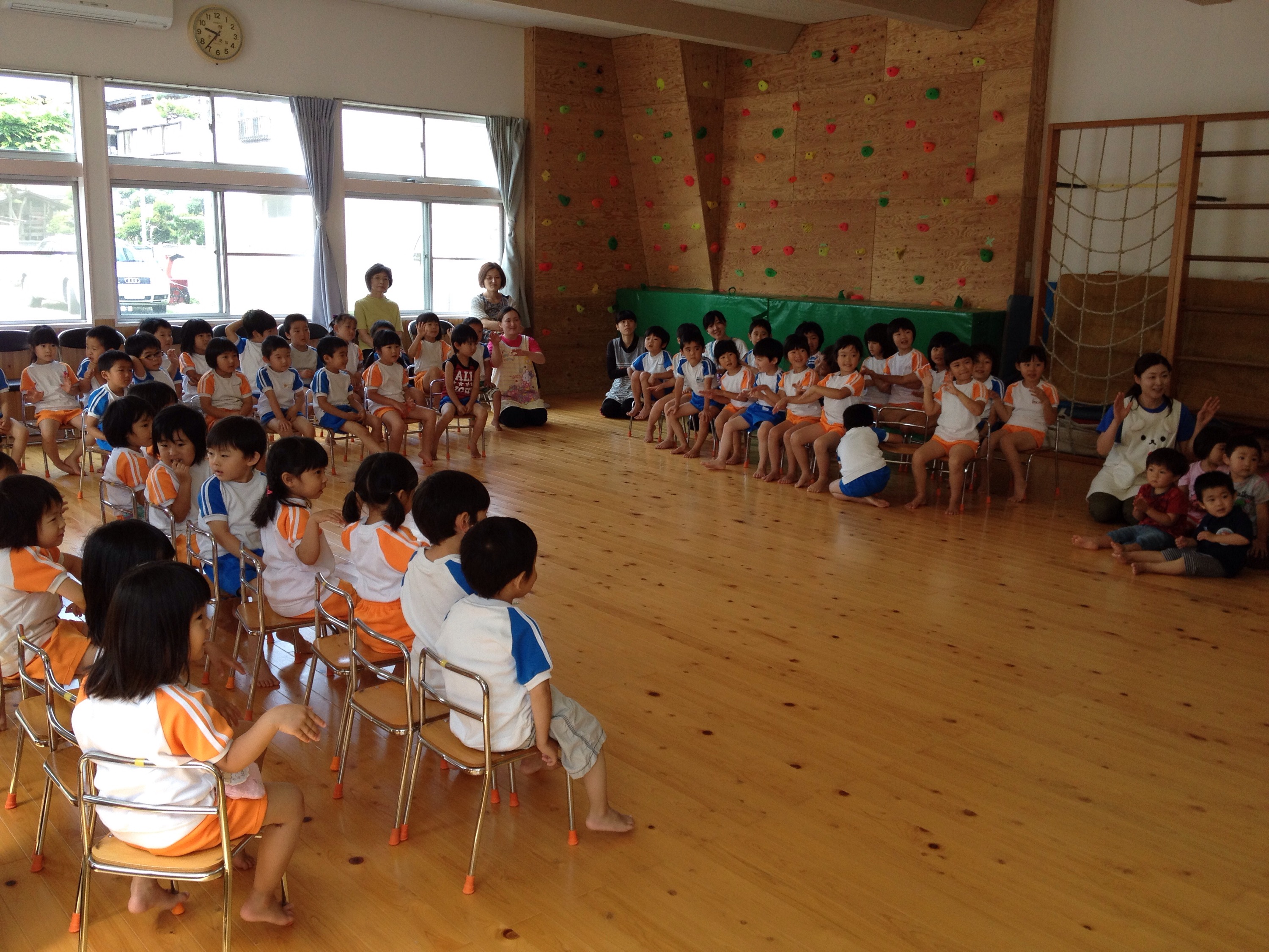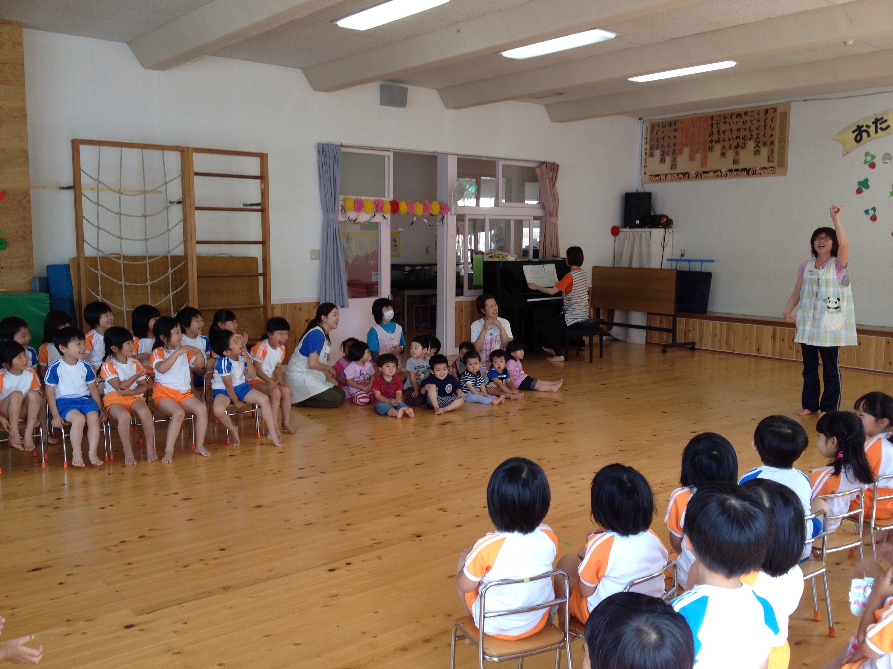 掃除のあとは、またホールに集まり、各クラスから歌などの発表、実習生のパネルシアターと楽器演奏、そして最後は、先生たちによるミニ劇♫どれも、楽しい発表となり、みんなでこひつじのお祝い会を盛り上げることができました♫