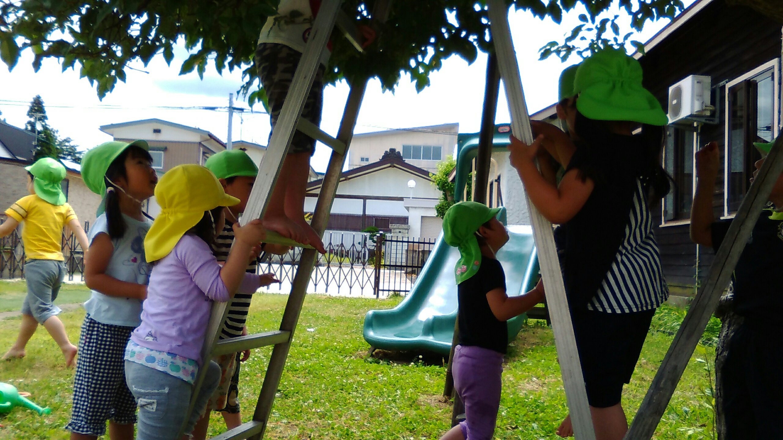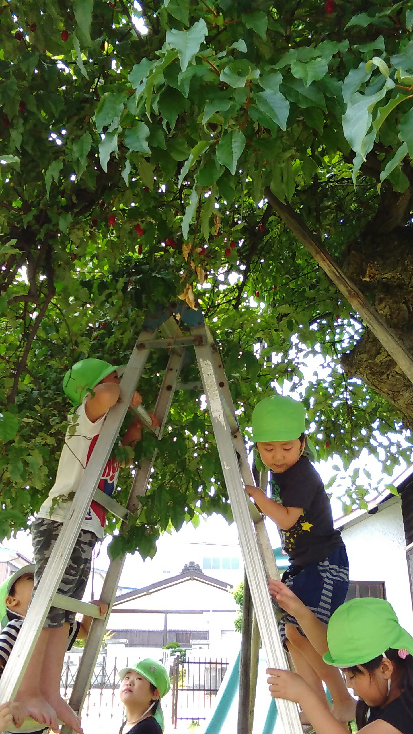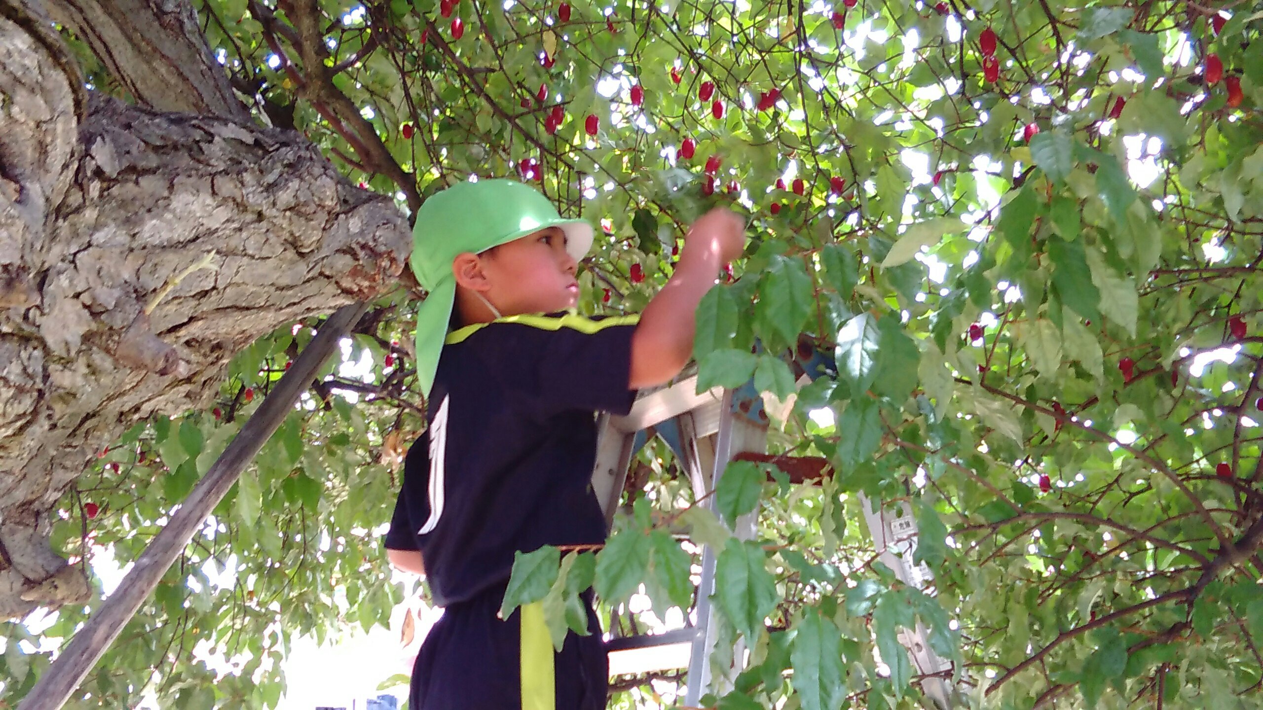 今年は大豊作で、おいしいグミをたくさん味わうことができています。今日は脚立にも上り、まるで、グミの実農家さん!!お友だちの分も採ってくれて、みんなでおいしくいただきました♪