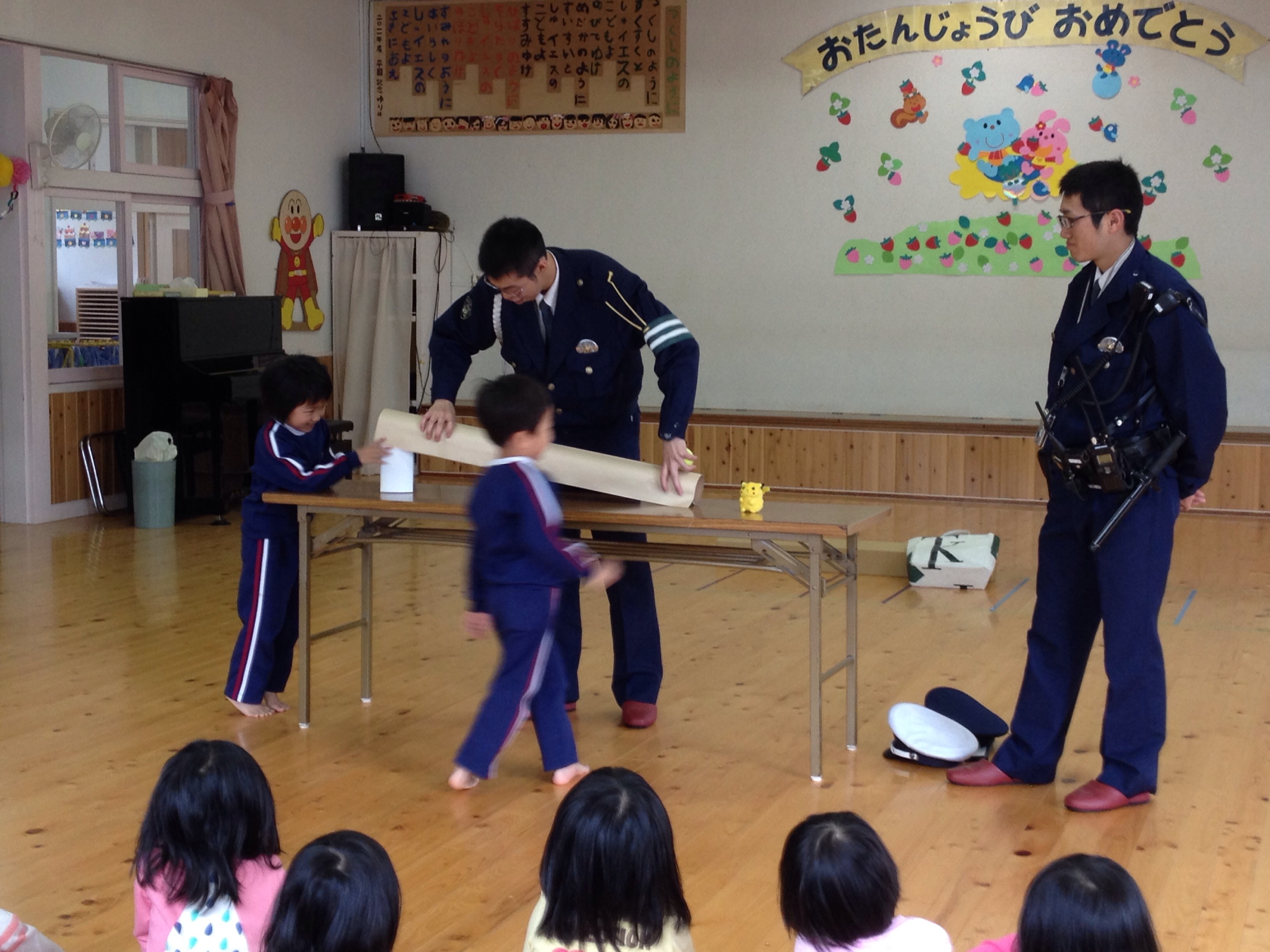 5月13日 警察官の方が来てくださり、子どもたちに、楽しく分かりやすく、道路の安全な歩き方について、お話をしてくださいました。
