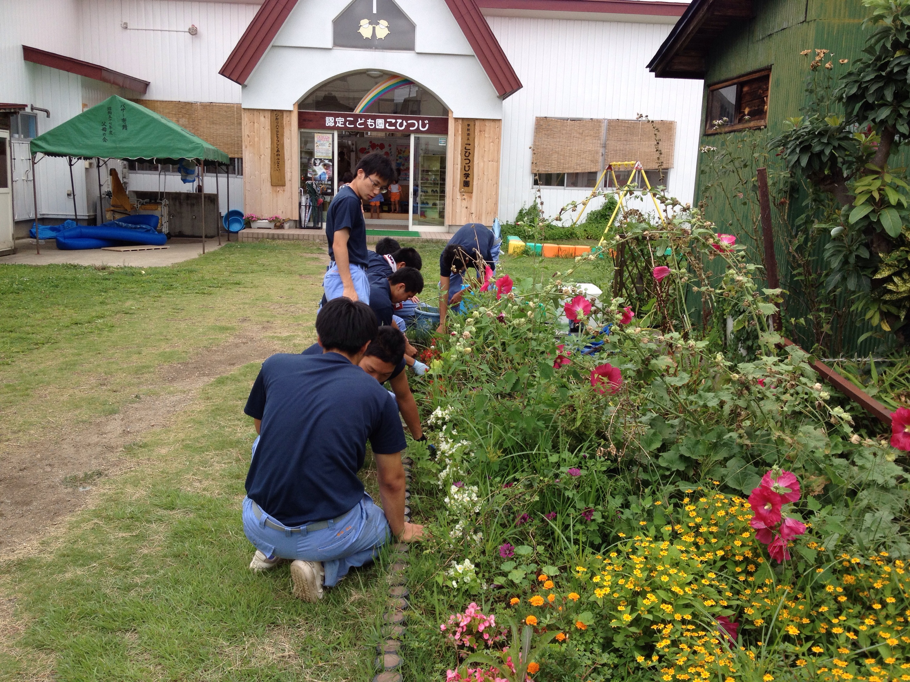 なんと!一学期に作ってくれた花壇のメンテナンスをしにきてくれたのです!!