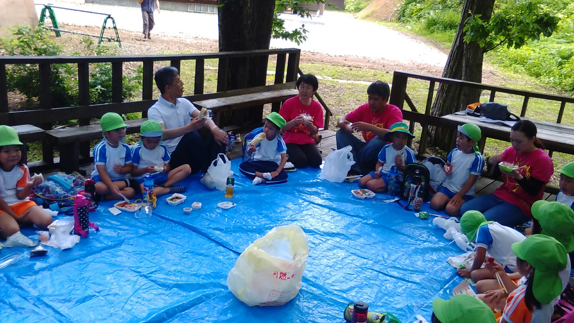 天気も守られて、お母さんの愛情たっぷりお弁当を食べています♪