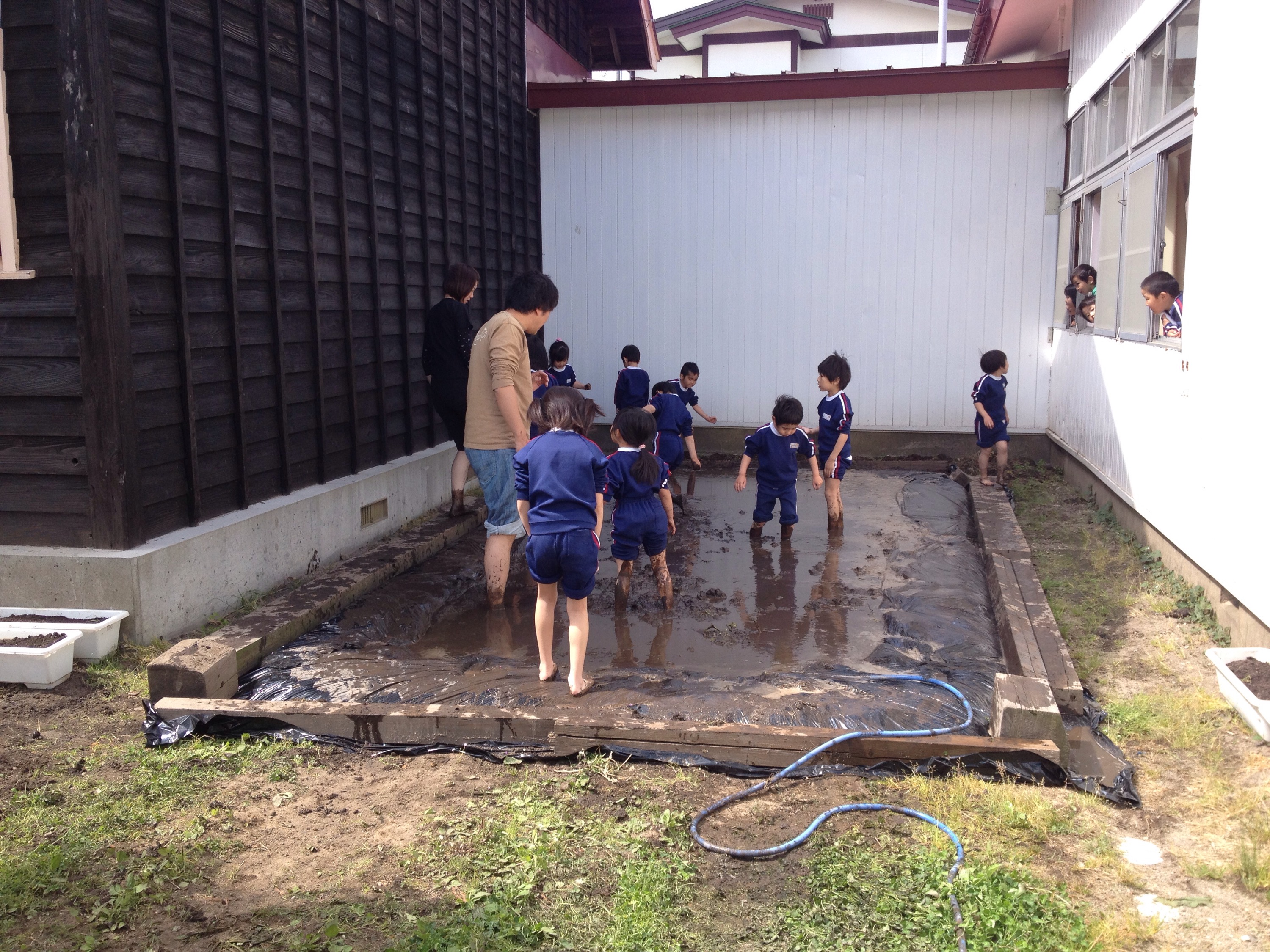 今日は園庭にて、田植えを行いました!