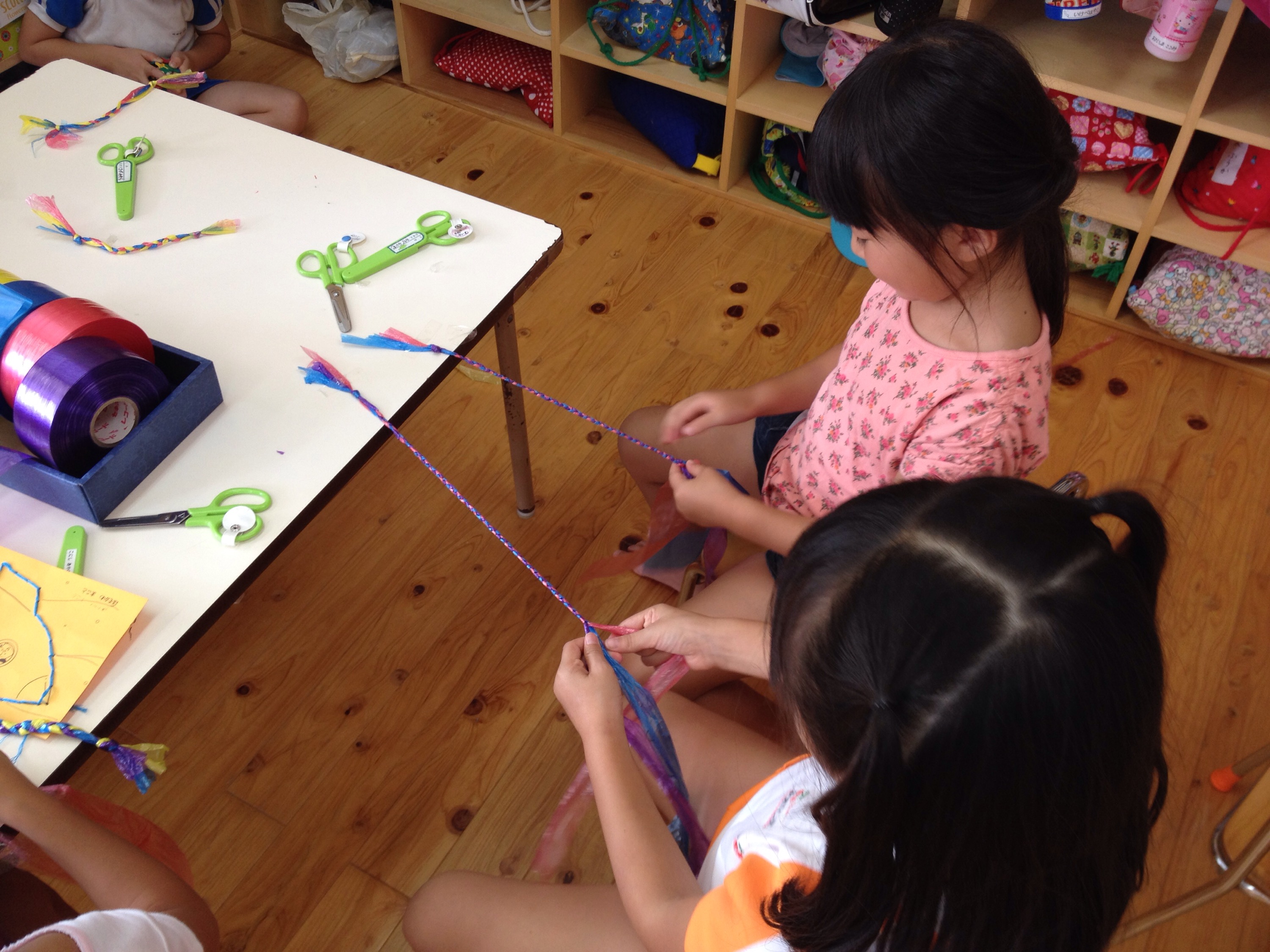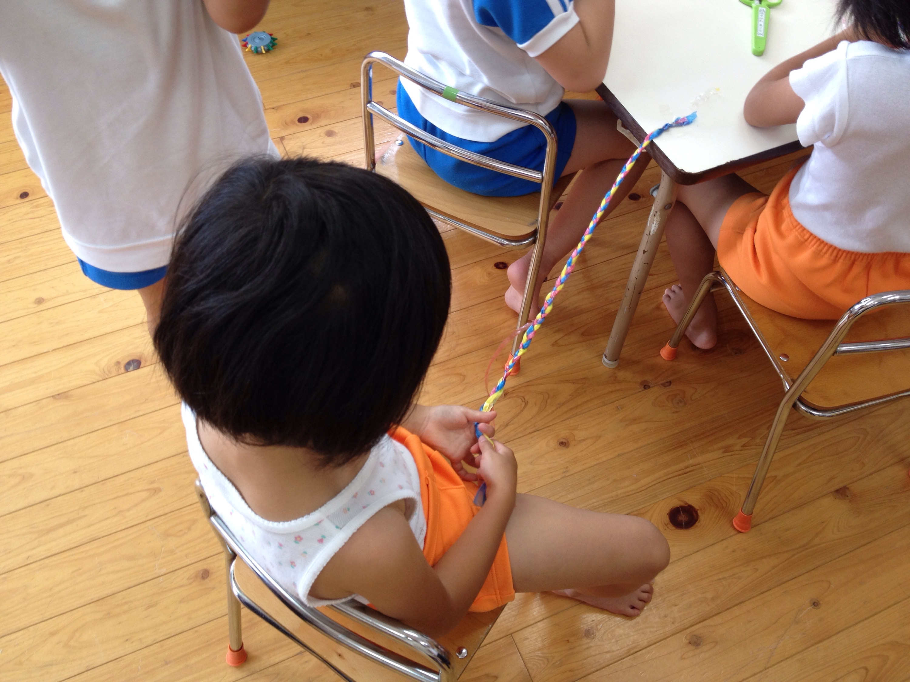 年長さん、三つ編みに挑戦中!編み方がとても綺麗です♫