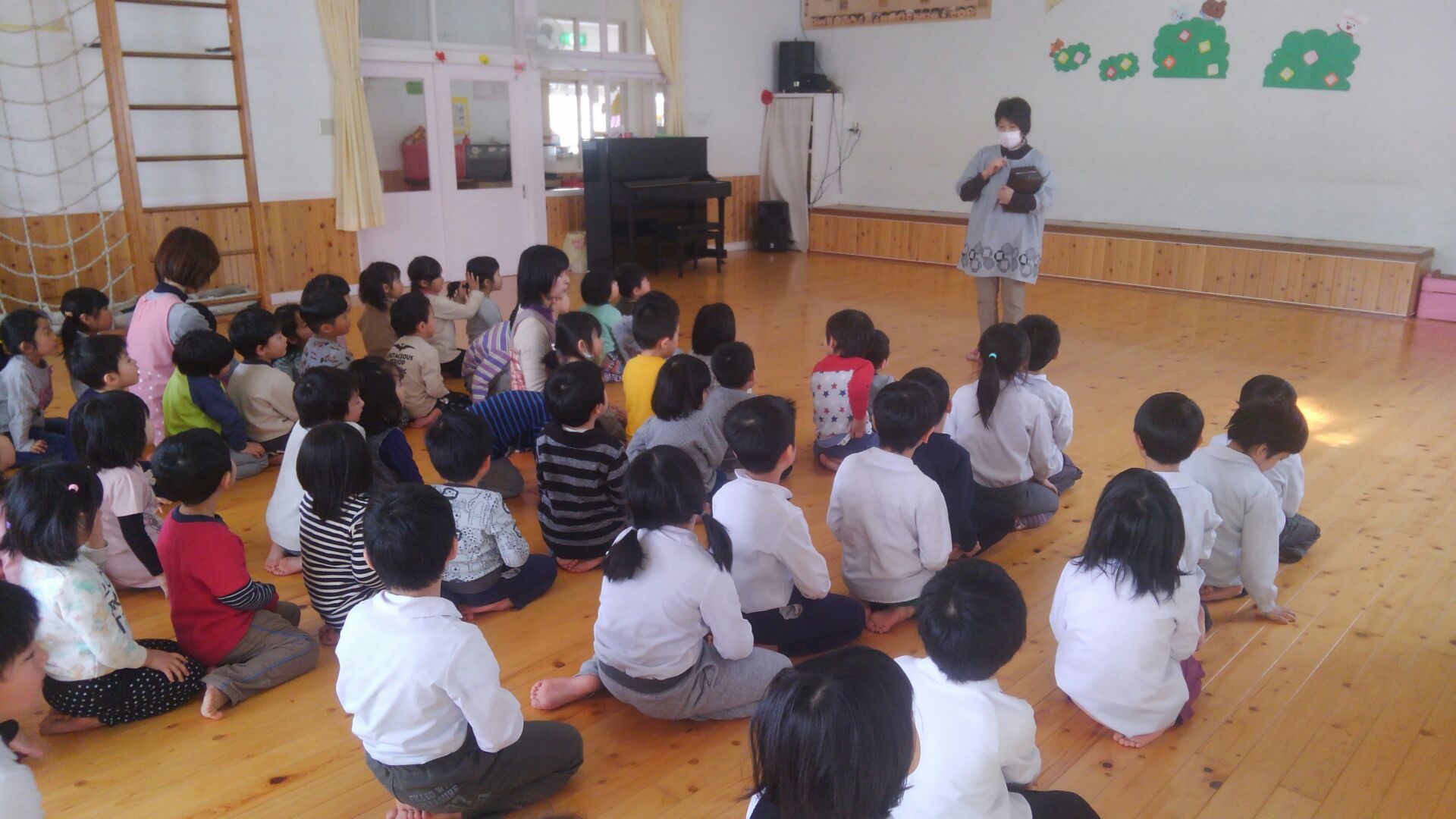 園長先生から、そのときの様子のお話を聞き、まだまだ、苦しい生活を余儀なくされ、自分の家に帰りたくても帰れない方々や、大切な人を亡くした悲しみの中にある方々のことを覚えて、みんなで心を合わせて祈りました。