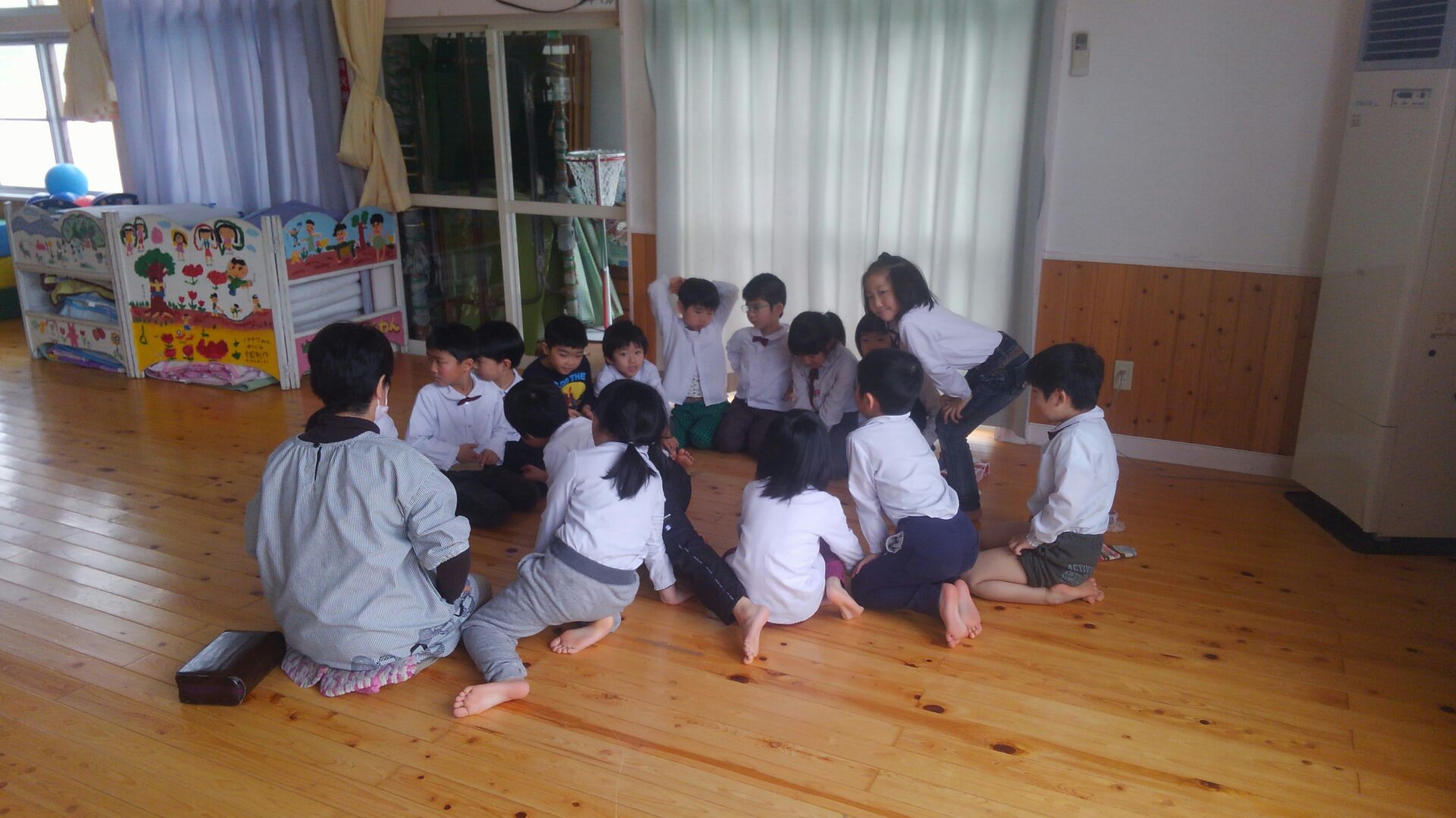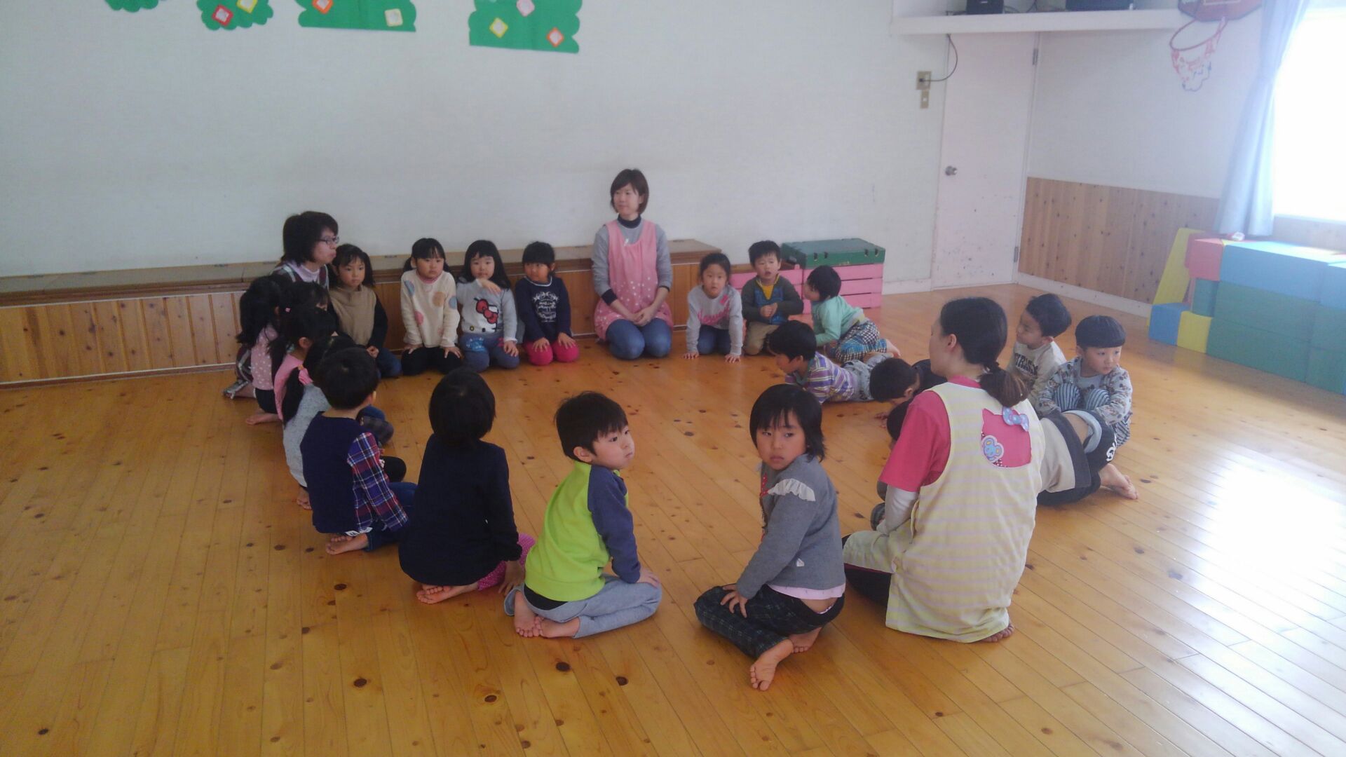 今日はゆりくみ、すみれくみ、たんぽぽくみがホールに集まり、東日本大震災のことを覚え「祈りの日」として、みんなで時を過ごしました。