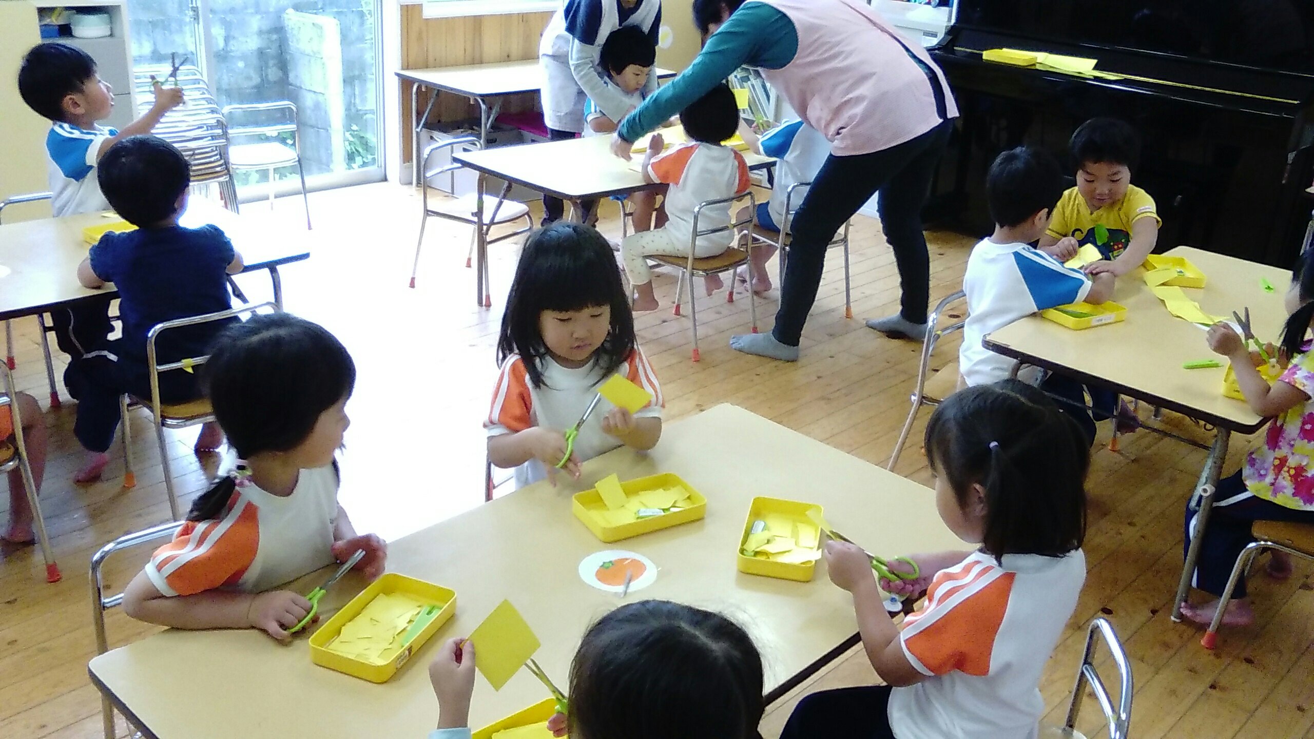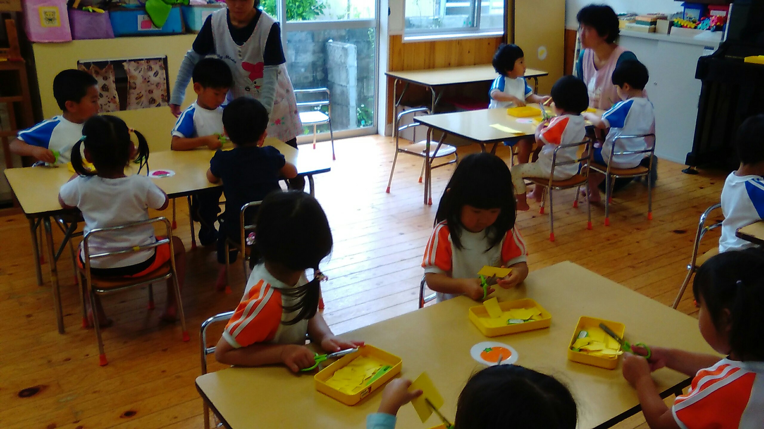 たんぽぽ組は、ハサミを使った活動。