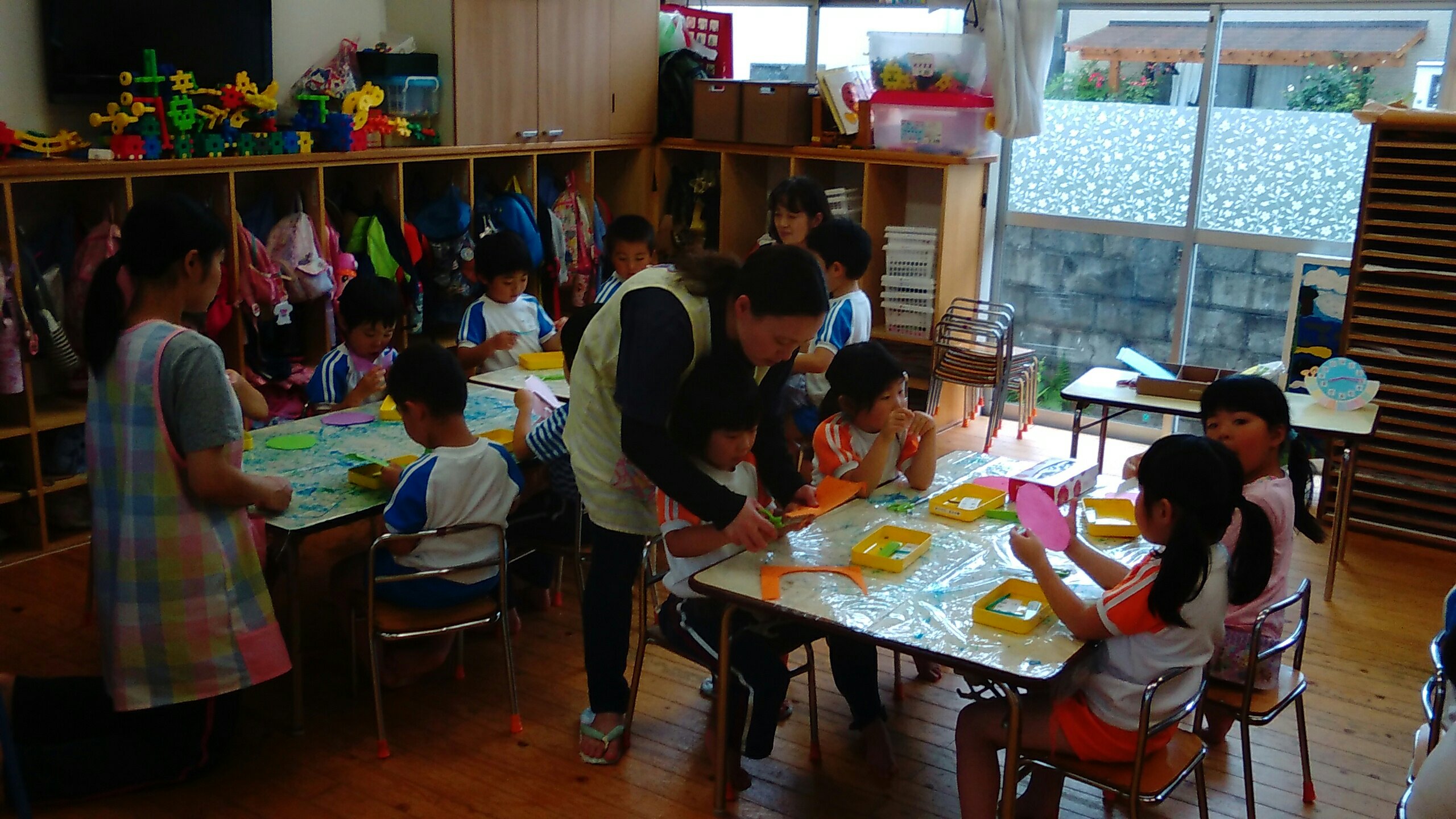 今日は自由保育参観日ということで、保護者の方々が子どもたちの様子を見に来てくださいました。