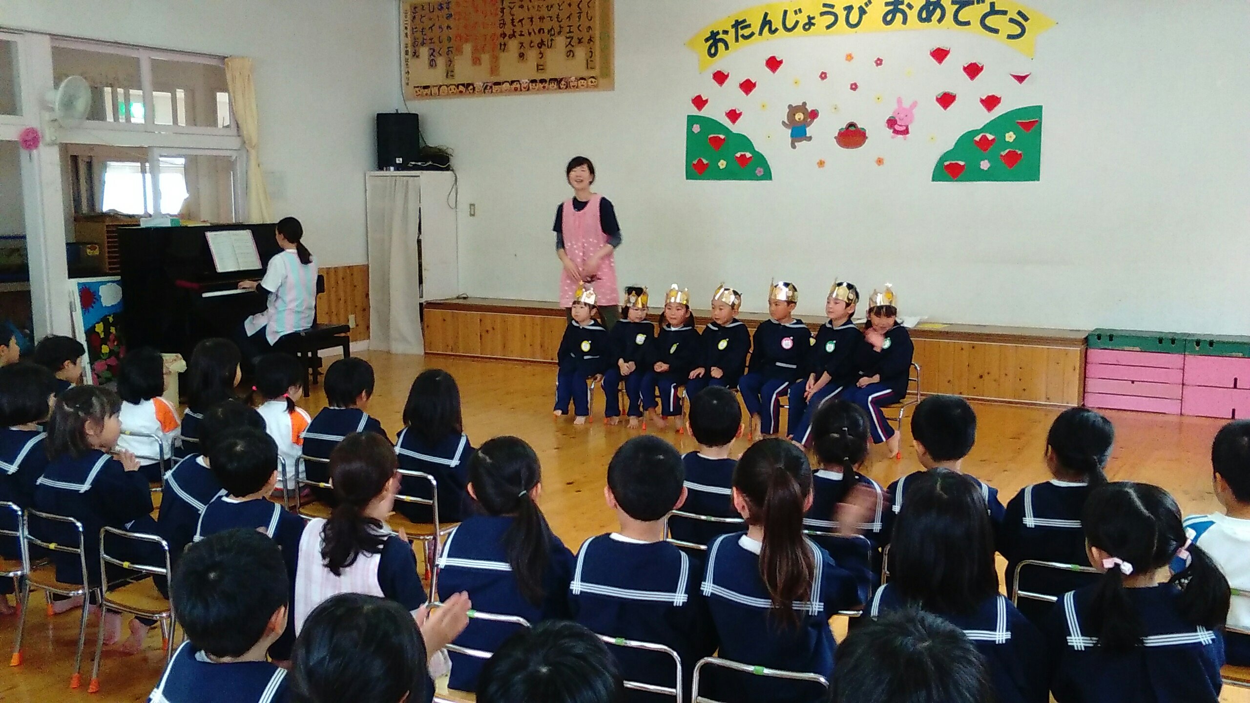 みんなの前でお祝いされるのはちょっと照れくさいけど、とってもうれしい気持ちの子どもたち♪ちょっとはにかんだ笑顔がとてもかわいいです♪