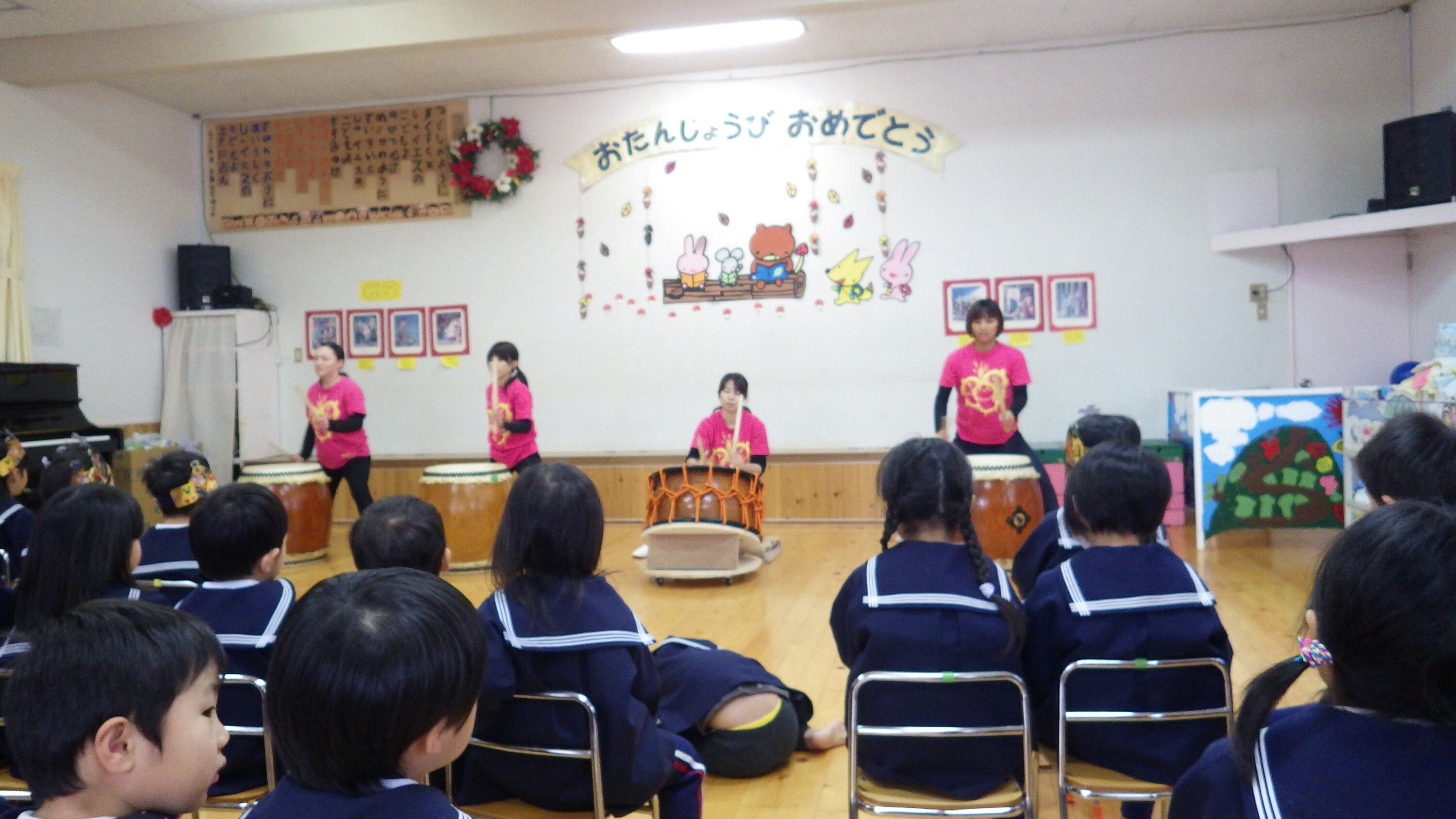 誕生会後、どこかのお部屋から太鼓の音が聴こえました♪