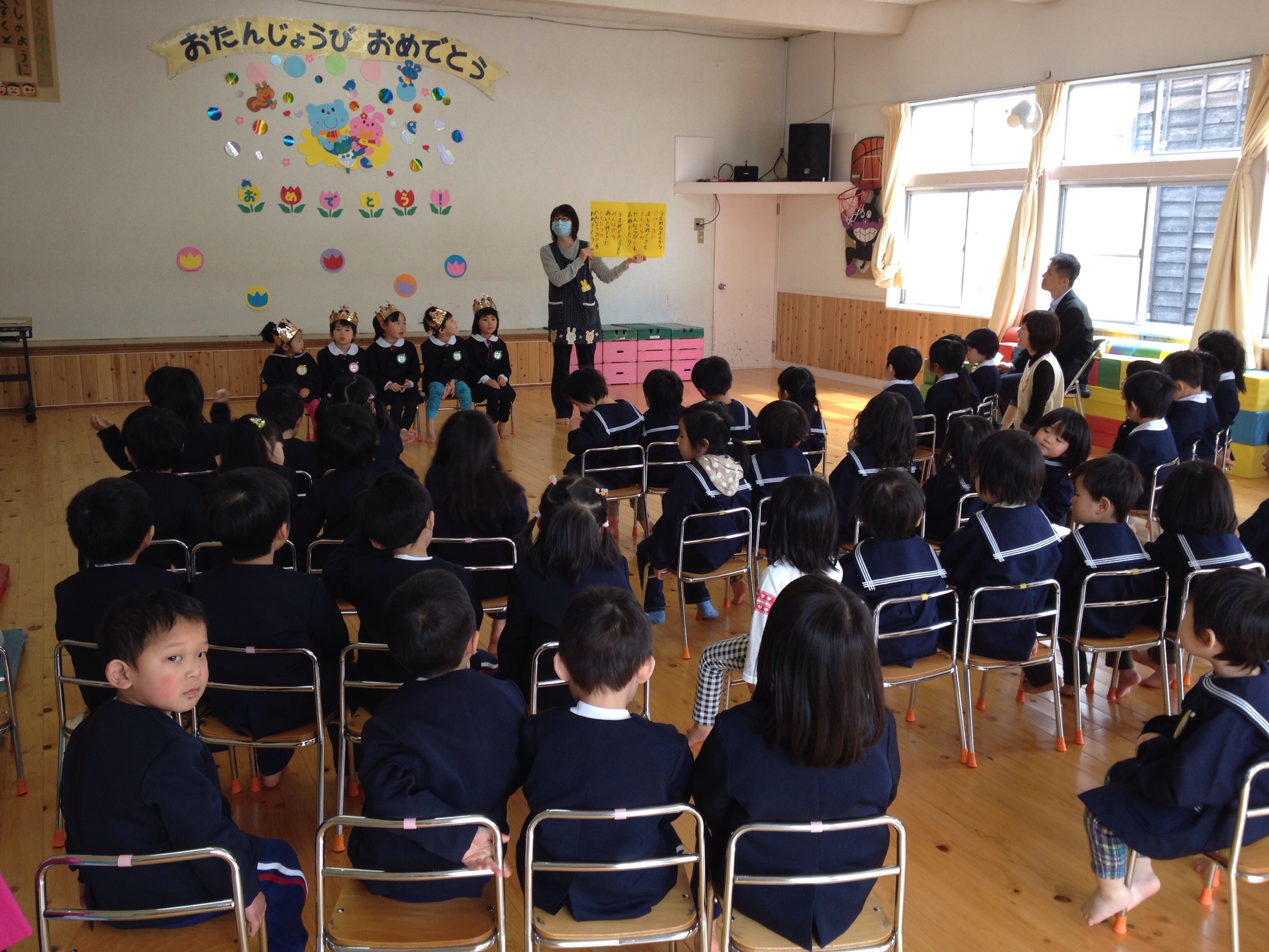 5人の子どもたちが一つ大きくなり、みんなの前で、しっかりと自分の名前と何歳になったかを言うことができ、成長を感じました。