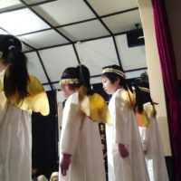 先週の土曜日(12月2日) 十文字町内のお店で、お遊戯会が行われました。 クリスマス祝会の中でそれぞれの場面に …