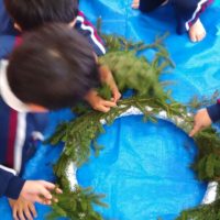 今日は、今週末からスタートする「アドベント(待降節)」のために、ゆり組さんは玄関に飾るクリスマスクランツ、すみ …