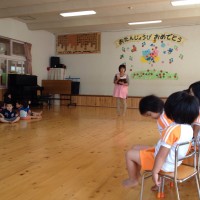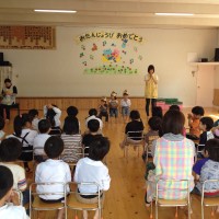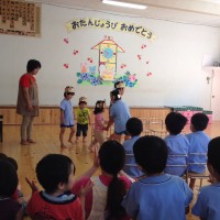 5月27日 5月生まれのお友だちのお誕生会が行われました。 主役の子どもたちは、みんなに「おたんじょうび、おめ …