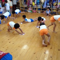 今日は園庭にて、田植えを行いました! 写真は、田植えの準備をする年長さんと、その姿を憧れの眼差しで見守る年中さ …