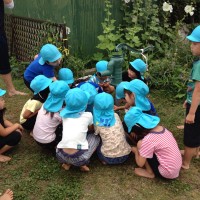 昨日、園庭に「手押し井戸ポンプ」が設置されました! 今日、早速、ゆり組さんとすみれ組さんが使ってみました♫ 重 …