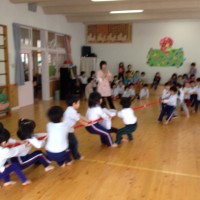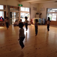 4月30日と5月1日の二日間、リズム遊びを教えてくださる先生が園に来てくださり、子どもたちと職員の研修会を行っ …