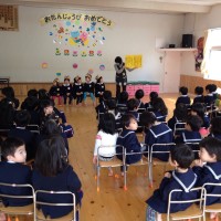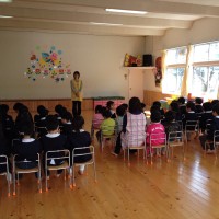 3月11日 祈りの日として、全園児が一つの部屋に集まり、4年前に起きた東日本大震災のことについて、園長先生から …