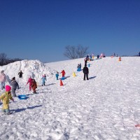 きれいな青空が広がり、雪遊びには最高の天気の中、今日は、全クラス、上掵団地にそり遊びに行ってきました♫