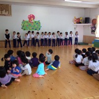今日は、ホールで年長さんへ感謝の気持ちを込めた「ありがとう会」が開かれました♫ 年長さんと一緒にゲームも楽しむ …