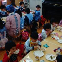 4月からたんぽぽ組さんになるもも組が、おいしい給食を一緒に食べようとたんぽぽ組さんに来てくれました♪ ひとつ上 …